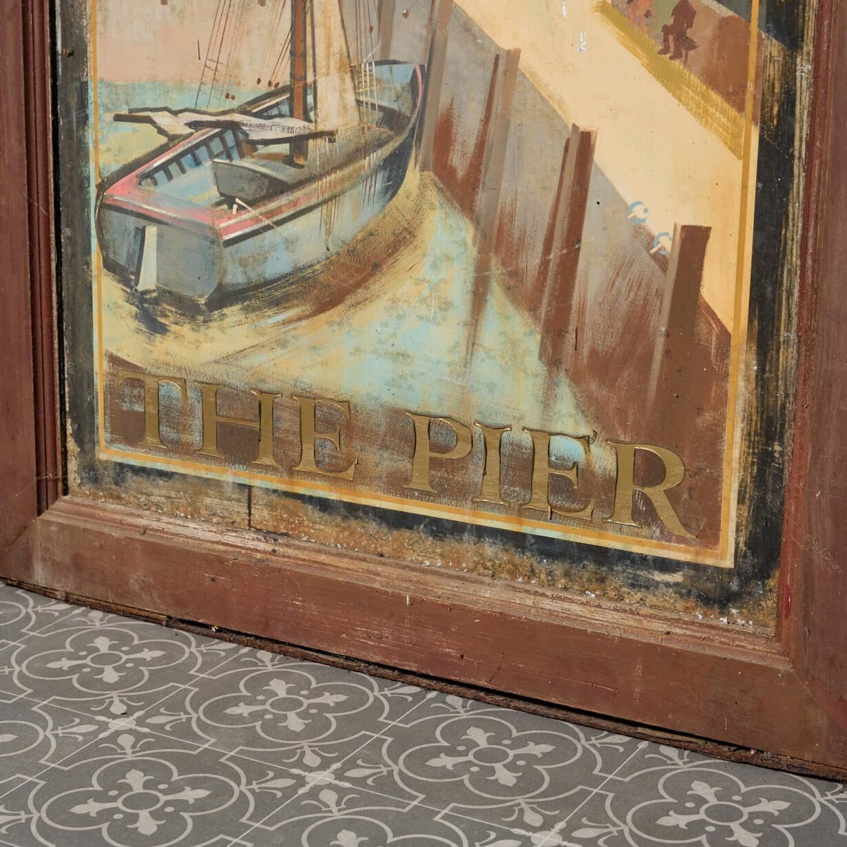 back to topA reclaimed hand painted double sided English pub sign named ’The Pier’. Salvaged from a pub in Devon, this sign is a display of English heritage, evoking the story of pub goers and revellers of times gone by.