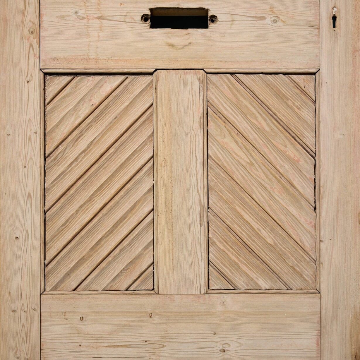 back to topAn unusual reclaimed Victorian four panel front door with fluted mouldings to the front panels and standard panels to the reverse. With a stripped finish, this antique pine door is ready for applying with paint, stain or wax as desired, making a smart front door for properties of any age or style.