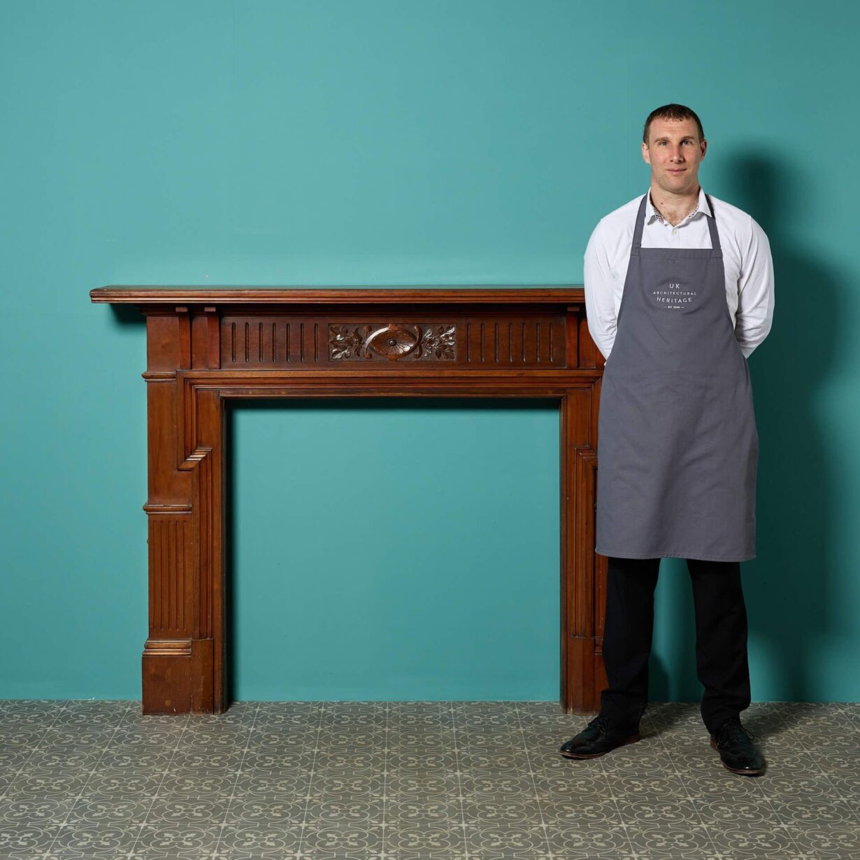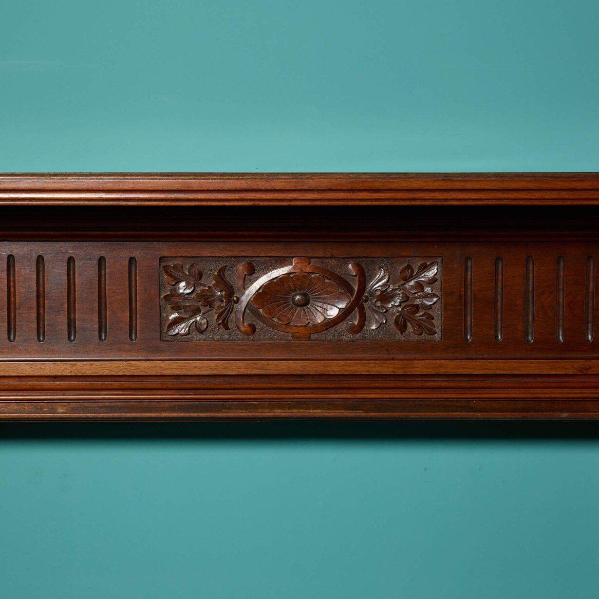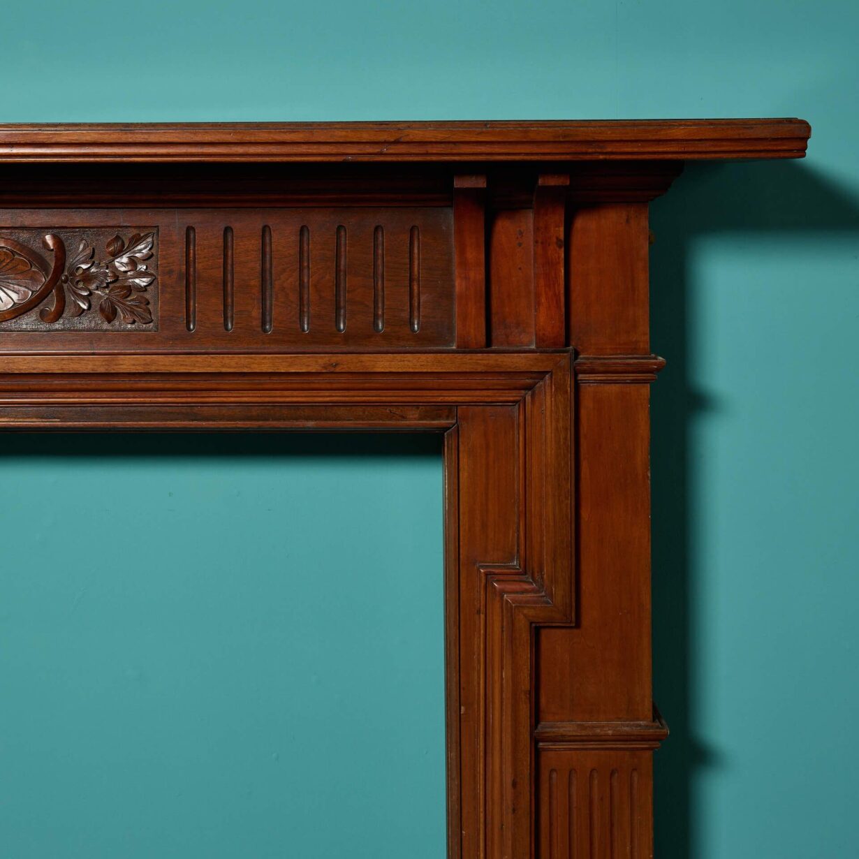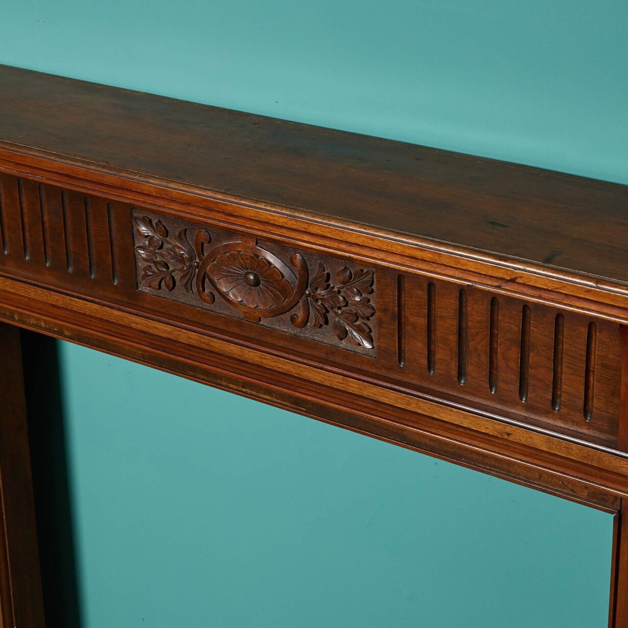Carved stylised flowers and foliage are showcased on a centre tablet paired with a fluted frieze. A fireplace certain to add charm and stateliness to any period property.