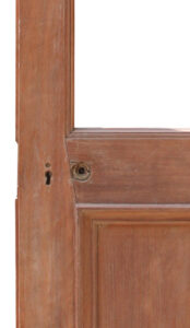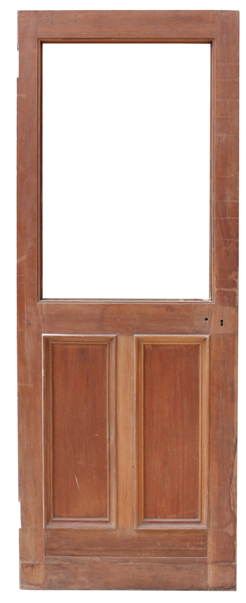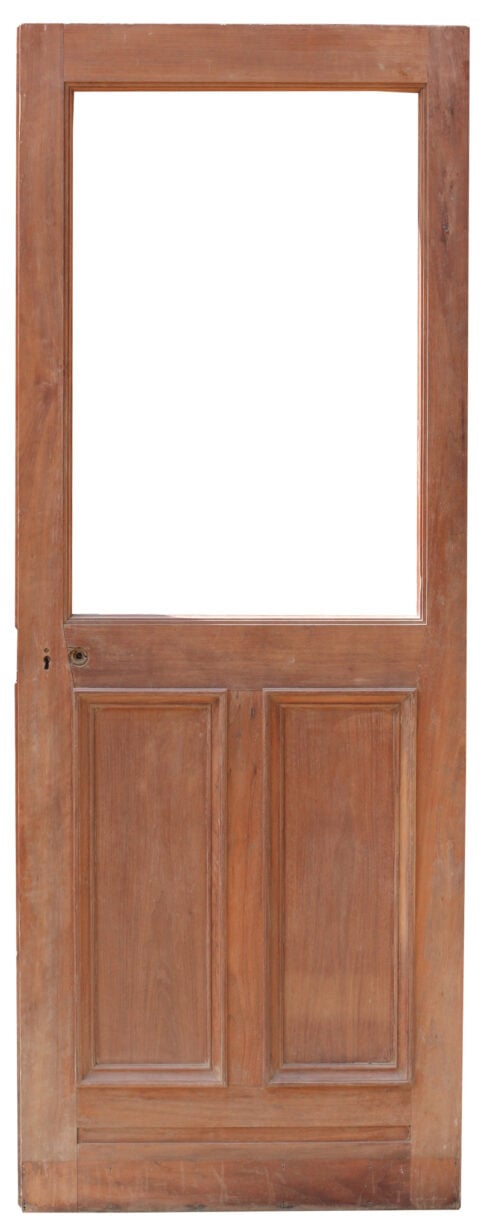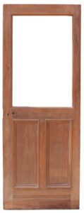 A reclaimed door constructed from solid Walnut, with space for a glazed panel