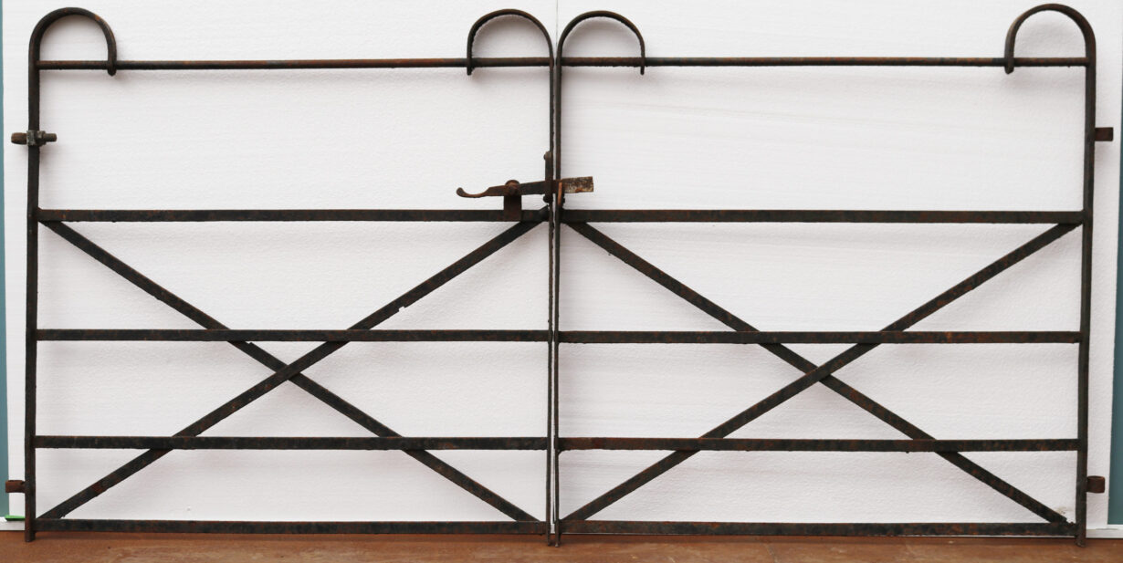 back to topA set of Georgian period drive gates constructed from wrought iron with Hooped ends.