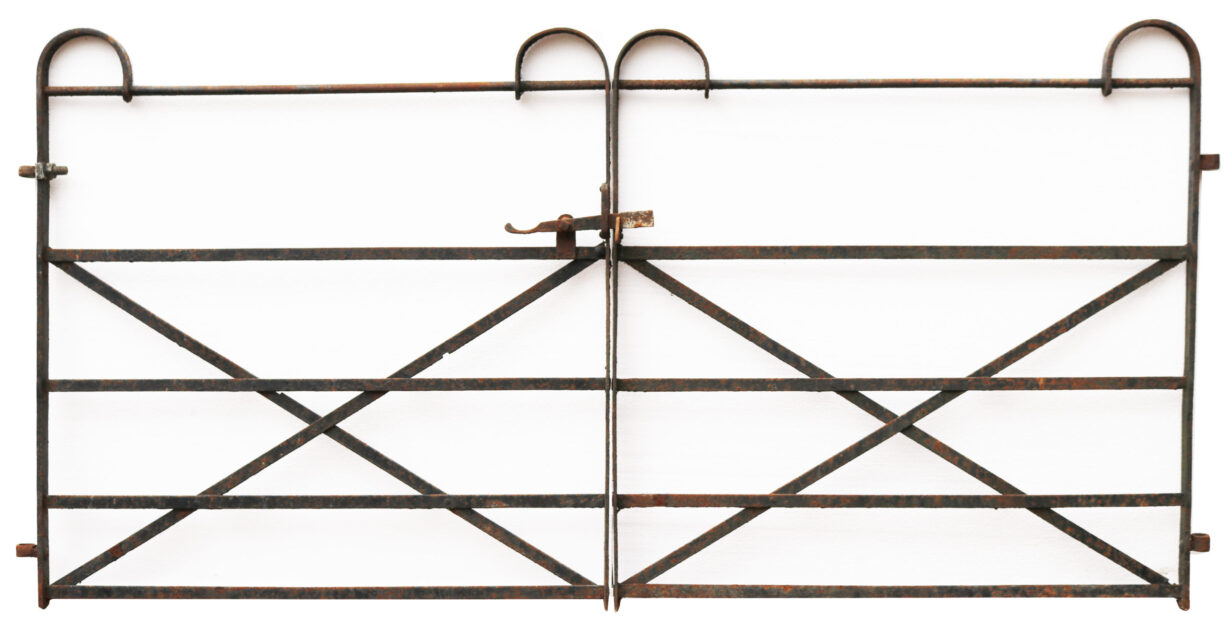 A set of Georgian period drive gates constructed from wrought iron with Hooped ends.
