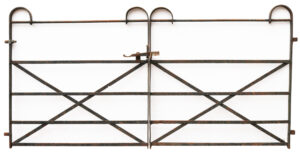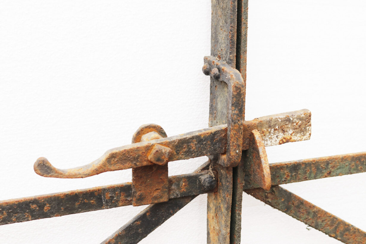 Good structural condition. Latch present. Surface rust finish. Fitted with hinge hoops.