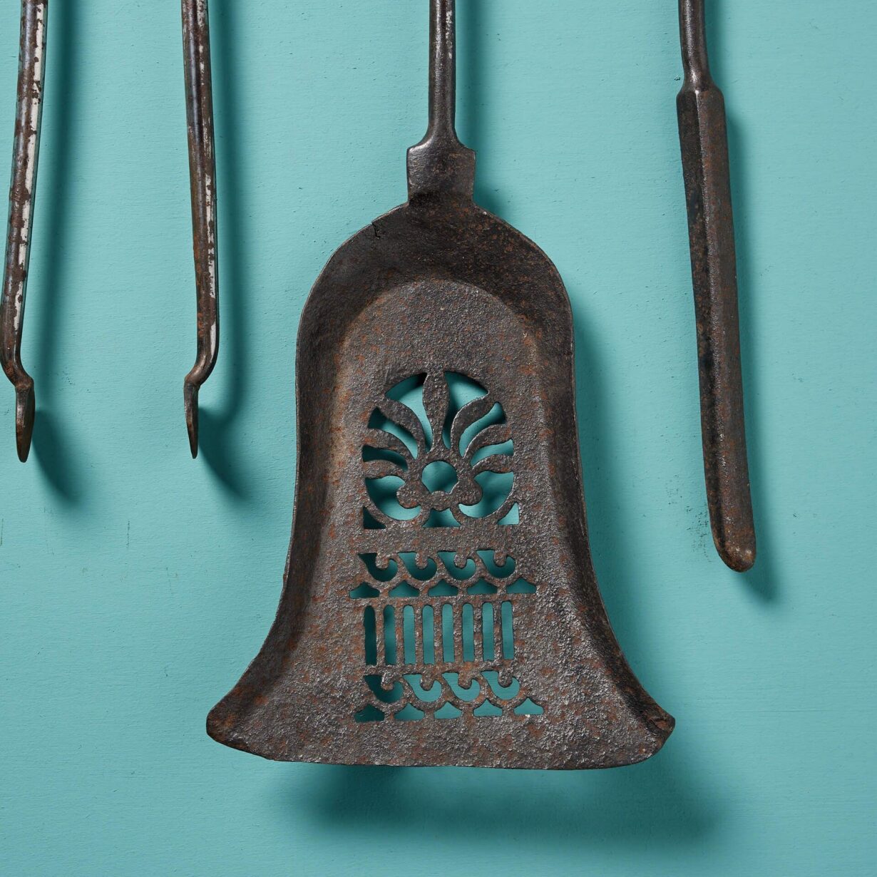 back to topA set of original reclaimed Georgian fire tools. The set consists of a poker, tongs and shovel with matching finial shaped handles. The perfect finishing touch for an antique fireplace!