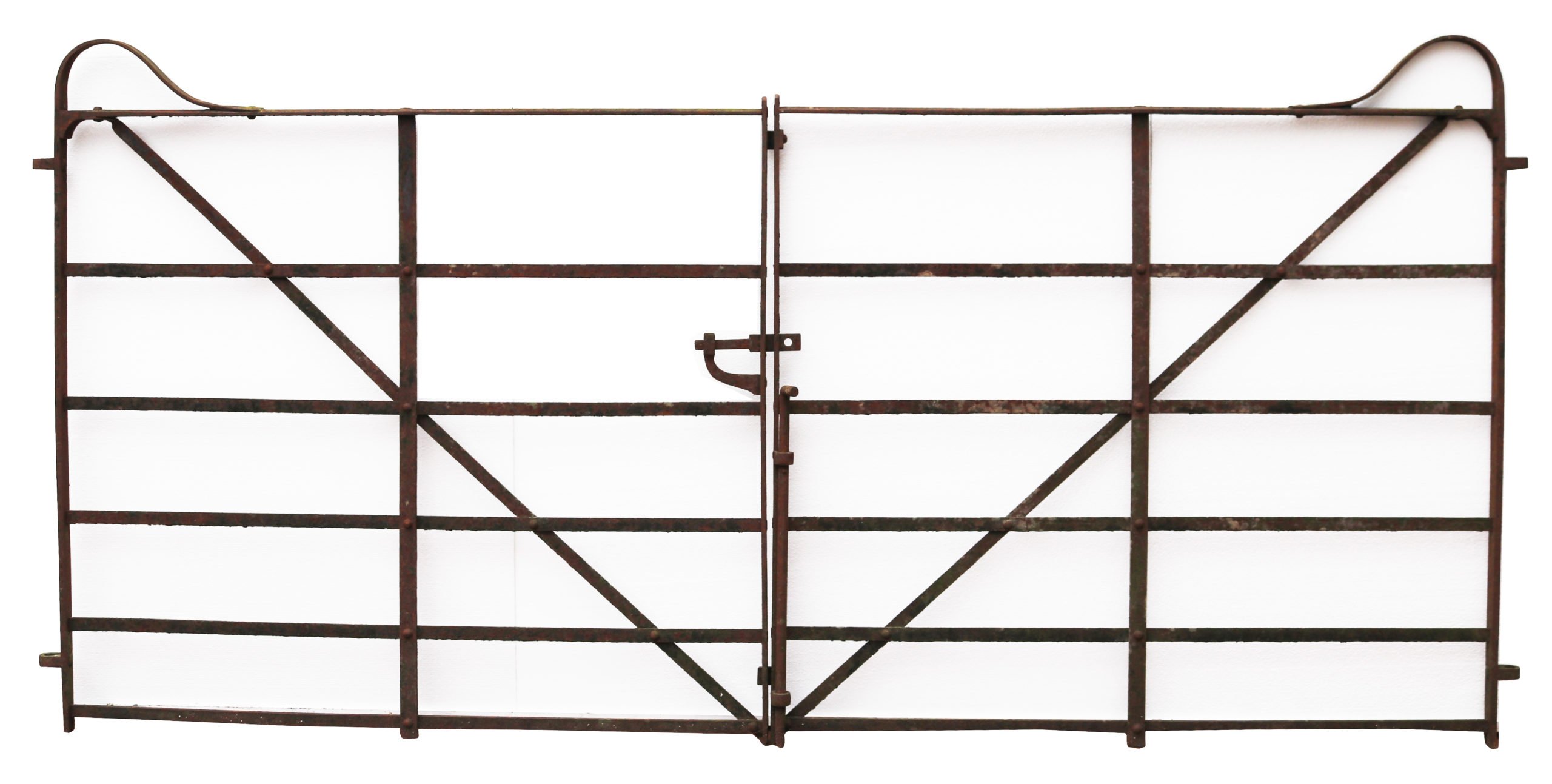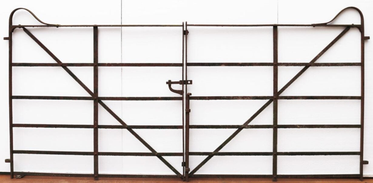 Good structural condition. Surface rust finish. Working latch present. Hinge hoops – diameter of hoops 18 mm. Working stay present.
