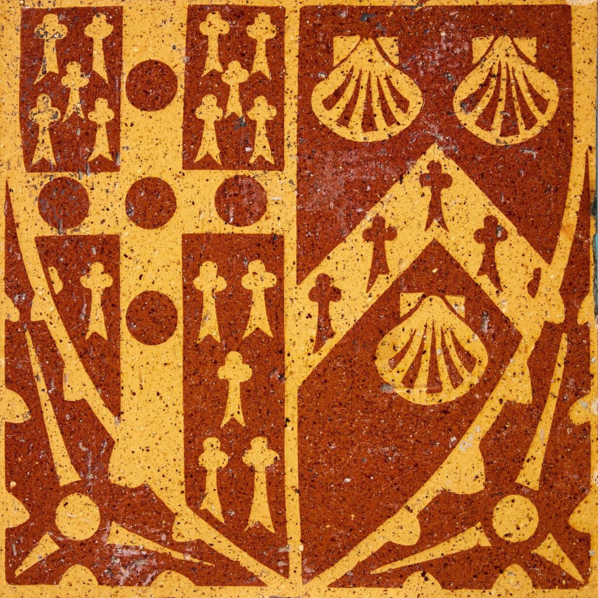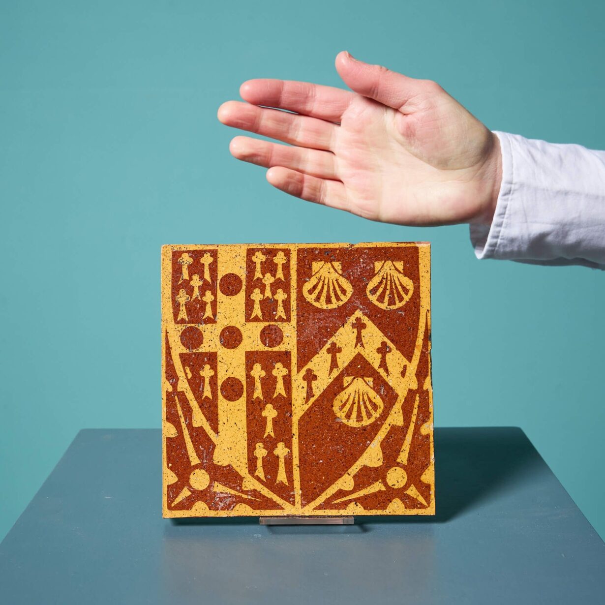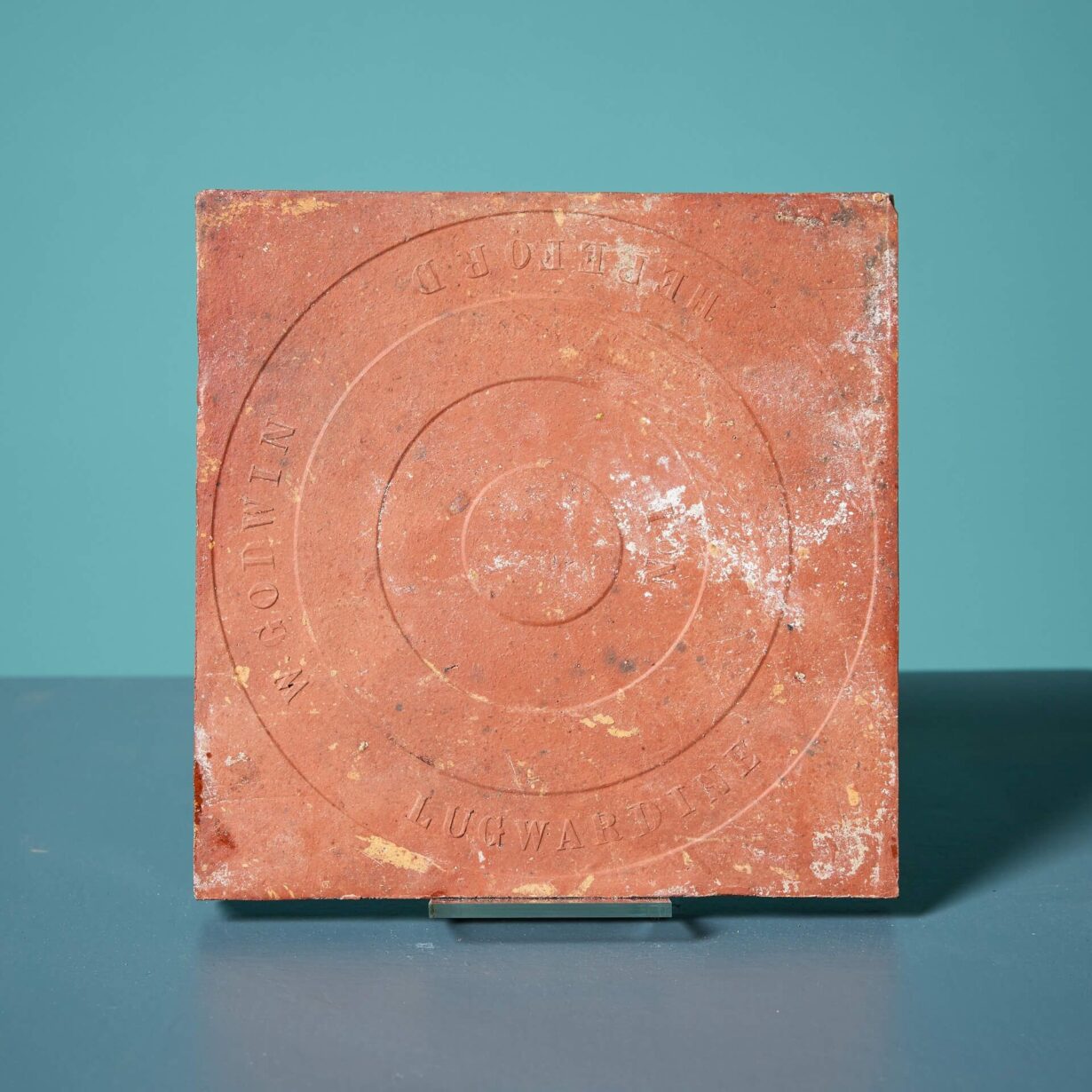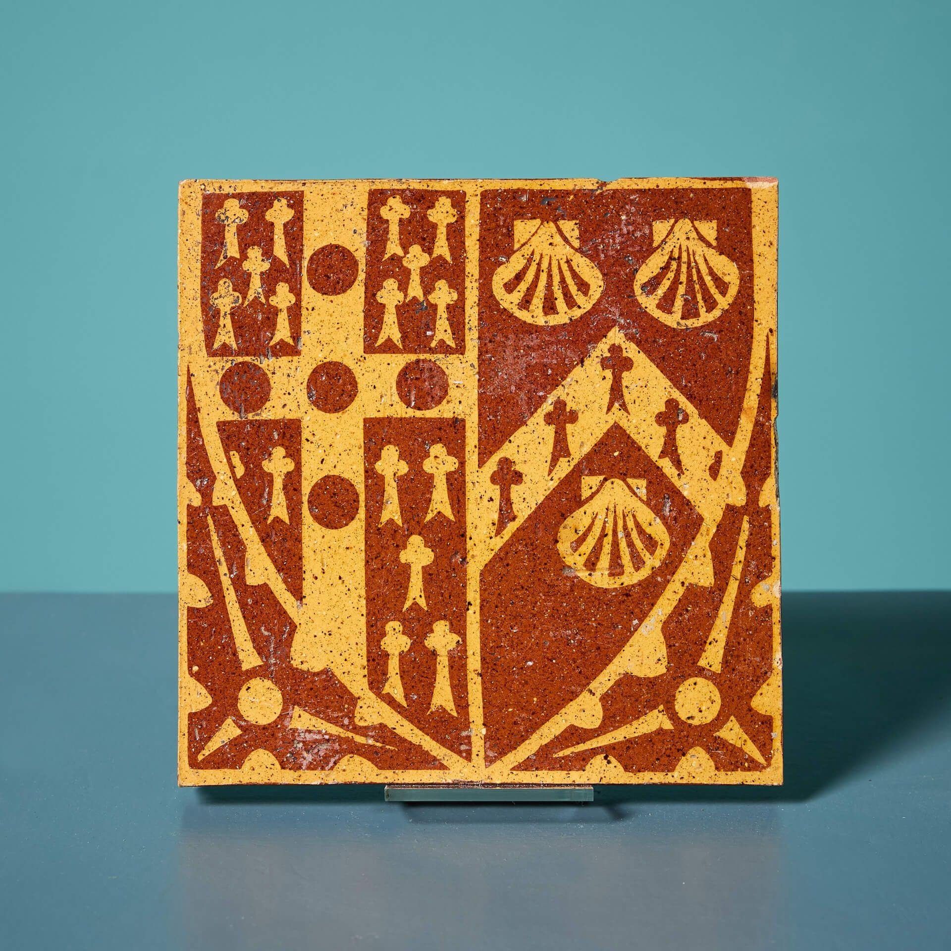 back to topAn antique glazed encaustic tile by W Godwin, Lugwardine, depicting a shield crest.