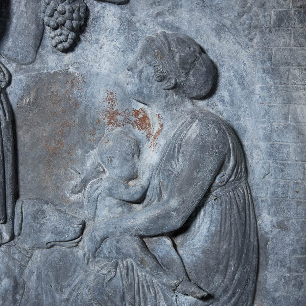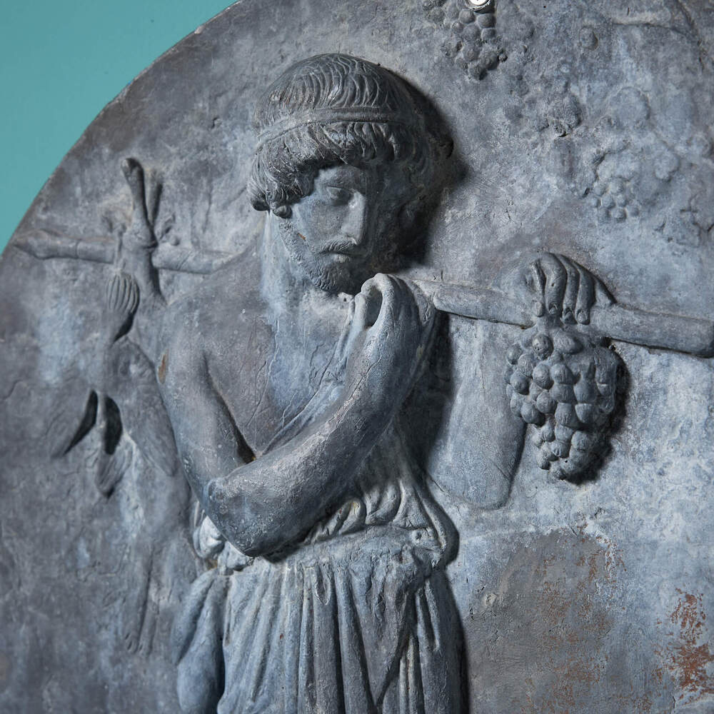 Large in scale and beautifully captured, this English leadwork plaque is suitable for styling in an interior or garden setting. Alternatively, it could be used alongside the others in the sequence as a characterful wall decor set inspired by classical art.