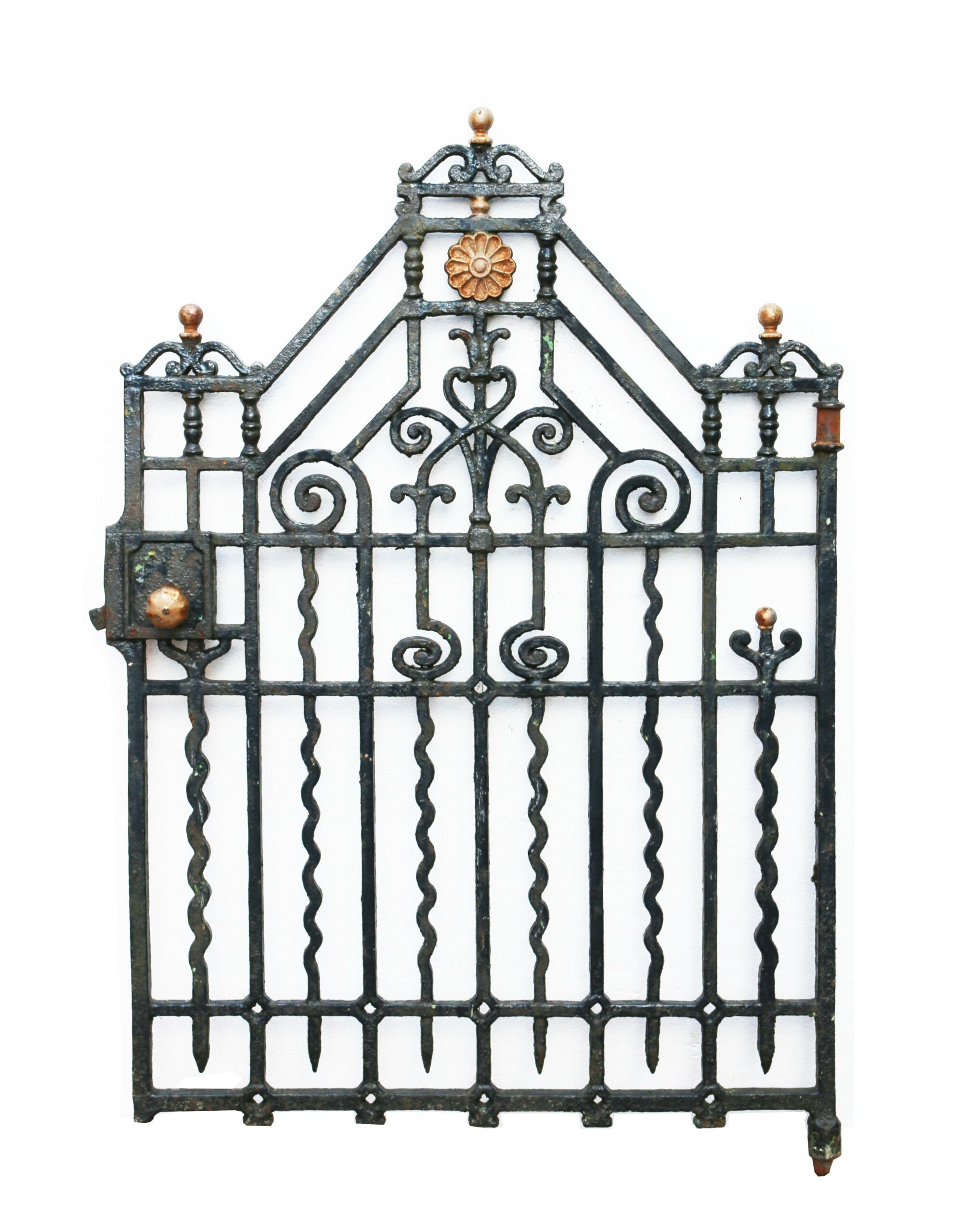 back to topAntique Cast Iron Gate with Posts. The gate was salvaged from a house in Cardiff.