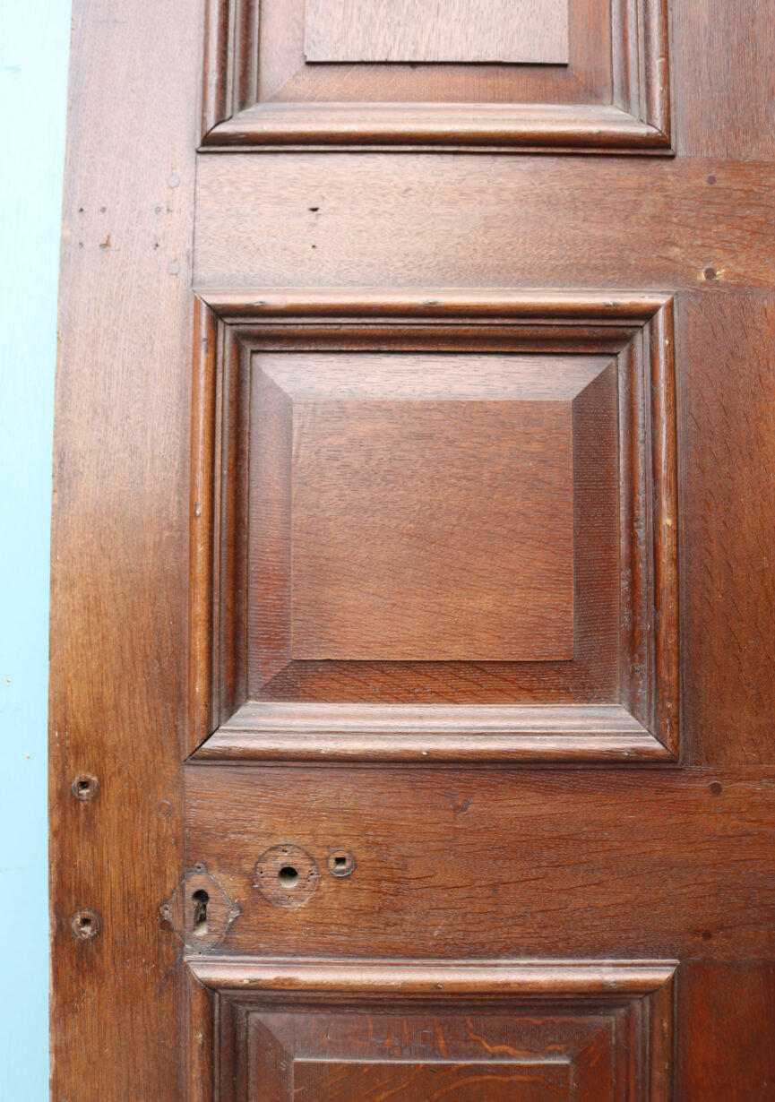 A good quality peg jointed door with raised and fielded panels. Salvaged from a property near Brighton. We currently have three similar doors and two panels available.