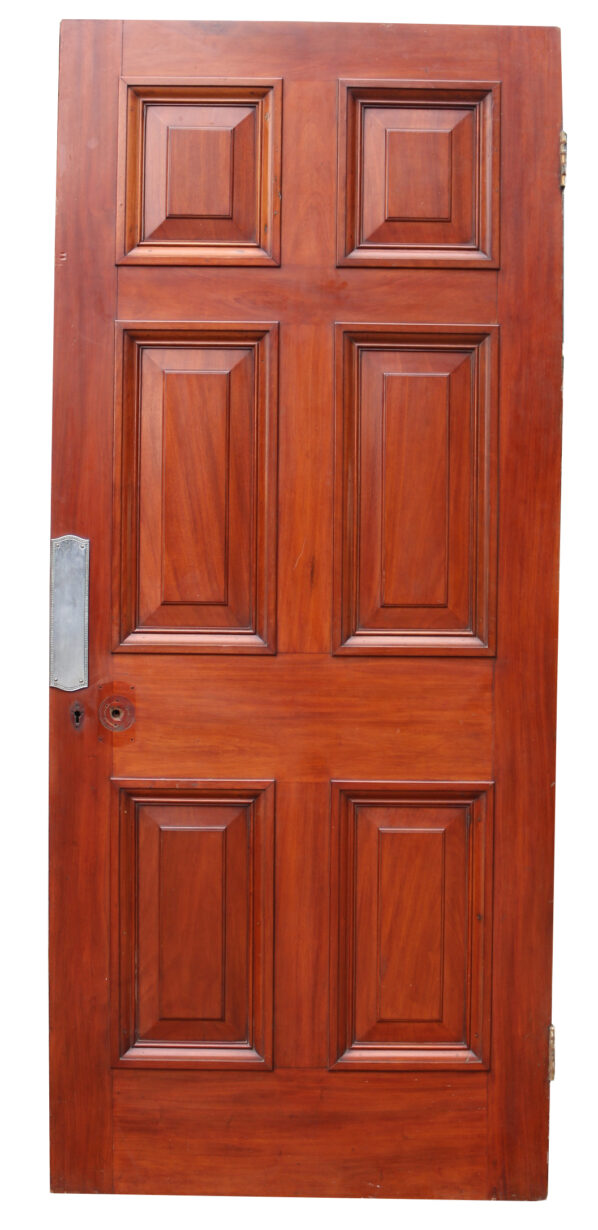 back to topThis beautiful Victorian Mahogany door has raised and fielded panels, chrome finger plate and a wax finish.