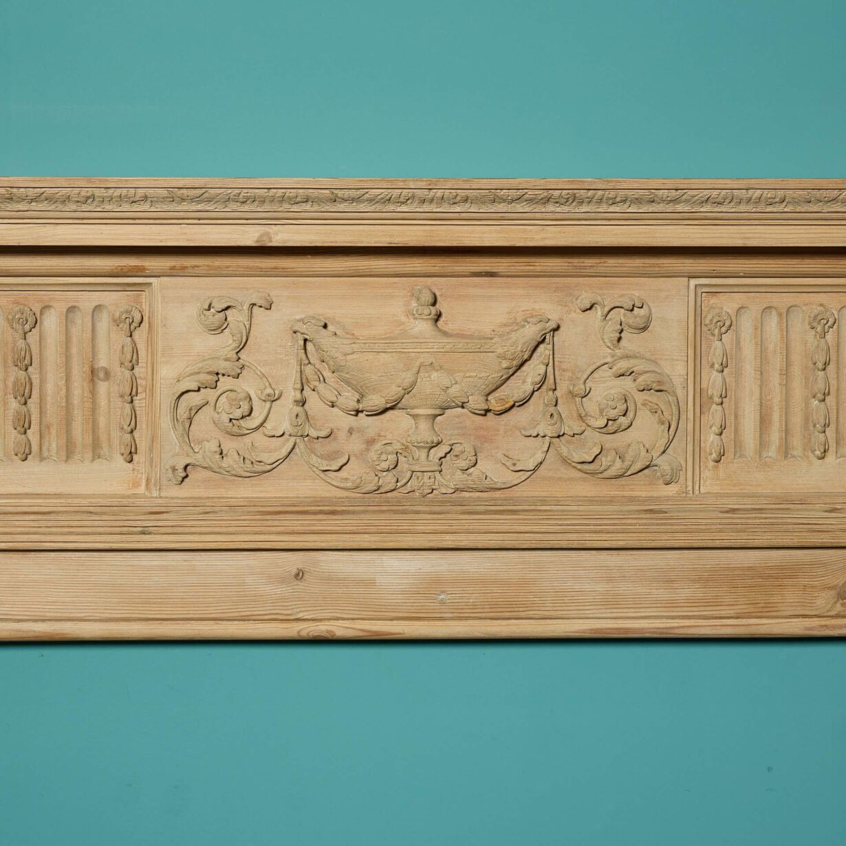 It is beautifully ornate, carved with motifs typical of the period, showcasing a beautiful carved frieze depicting urns and foliage with patera to the end blocks.