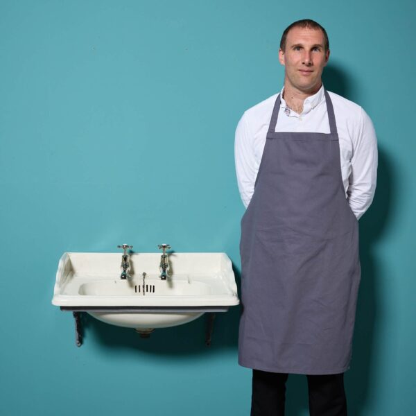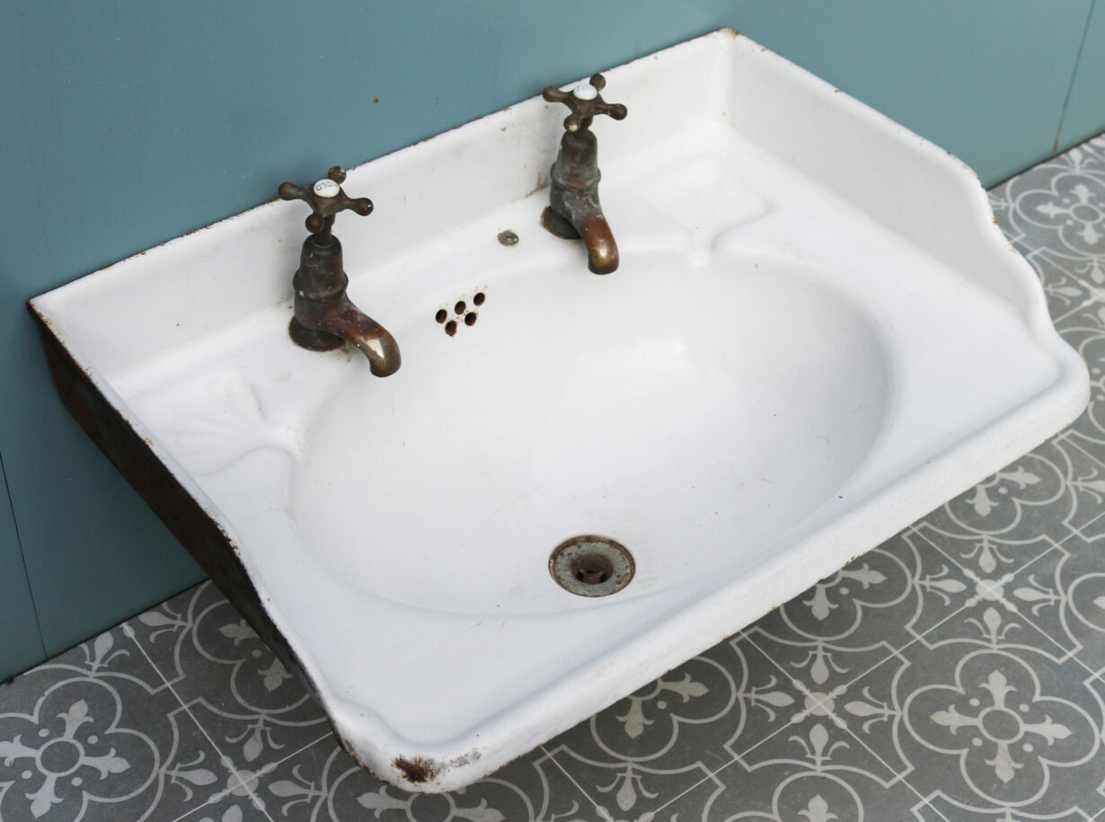 An unusual reclaimed cast iron sink with original brass taps.