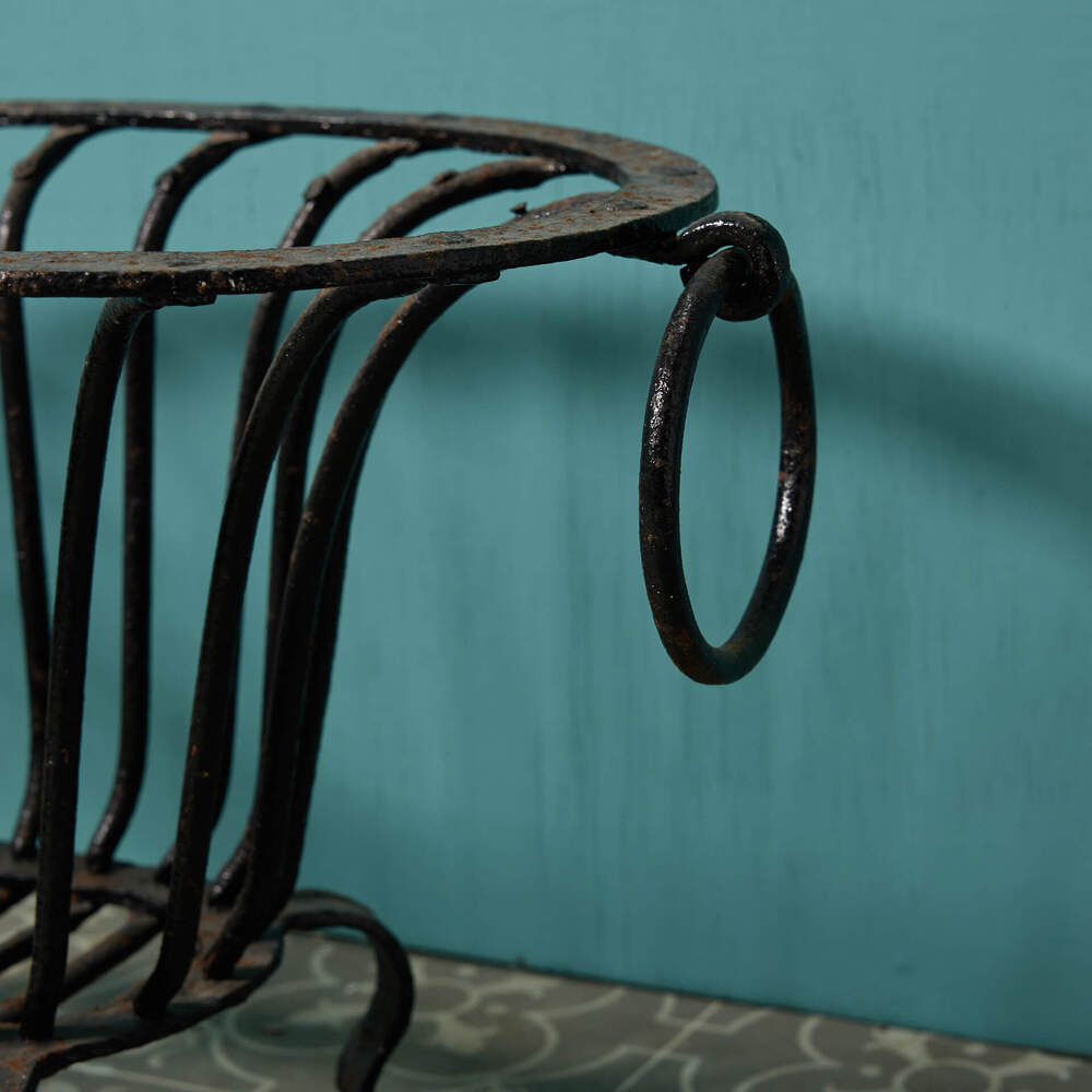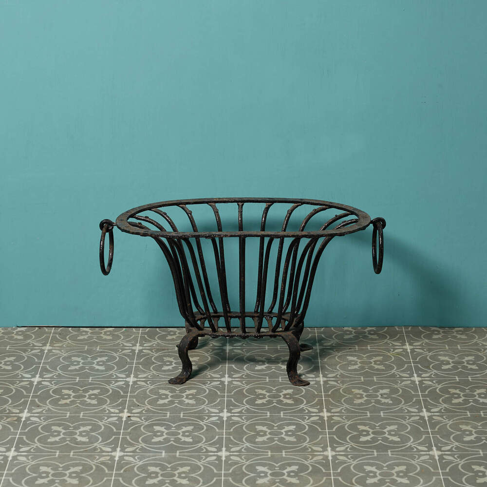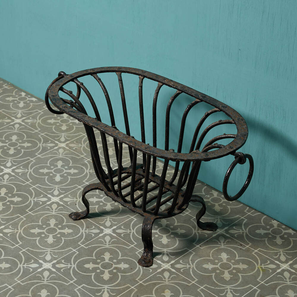 An unusual grate, the shaped basket with ring handles, reclaimed from a Somerset farmhouse.