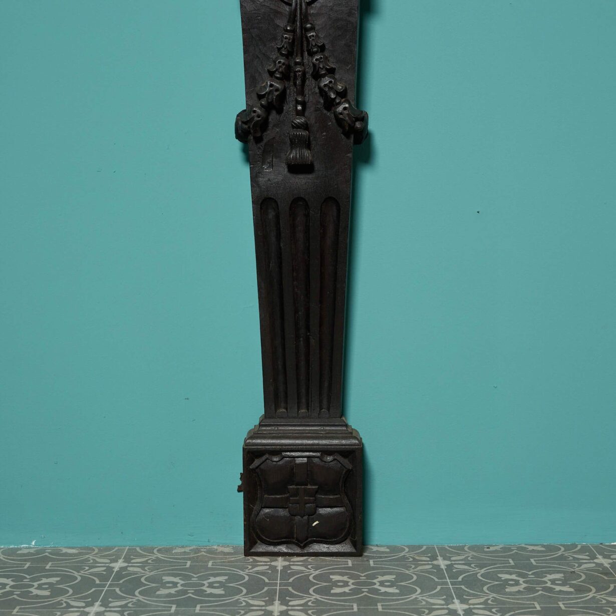 back to topA handsome English carved oak Tudor style fireplace, dating from the late 19th century. Reclaimed from a house in Newcastle, this boldly carved fire surround has a striking appearance, enhanced by its dark stained oak finish.
