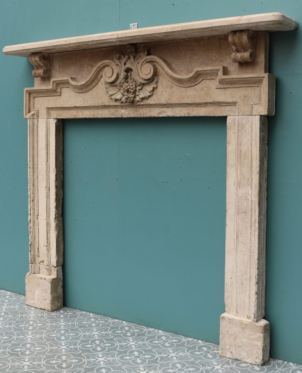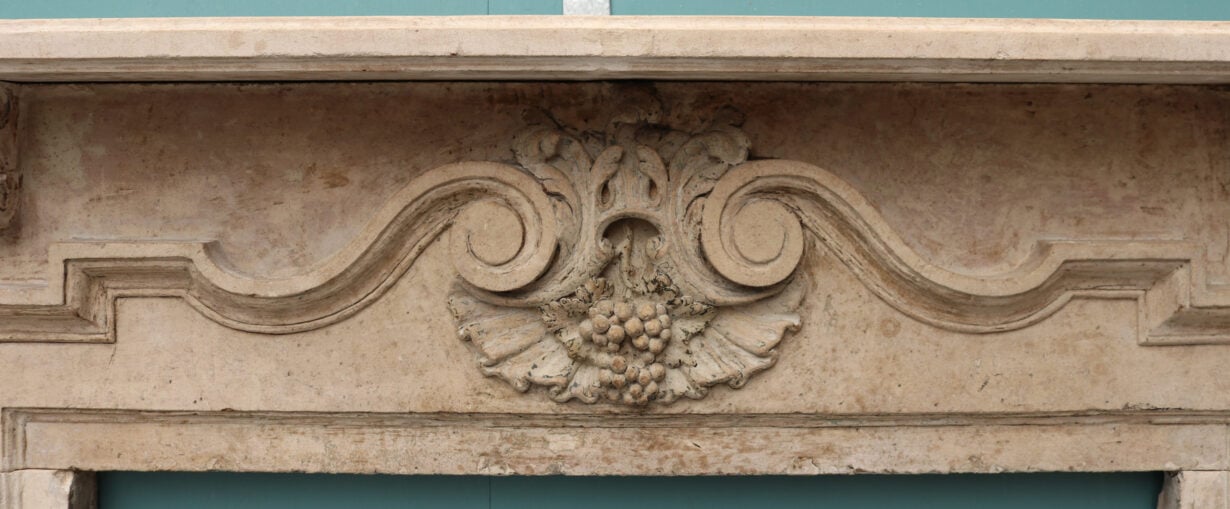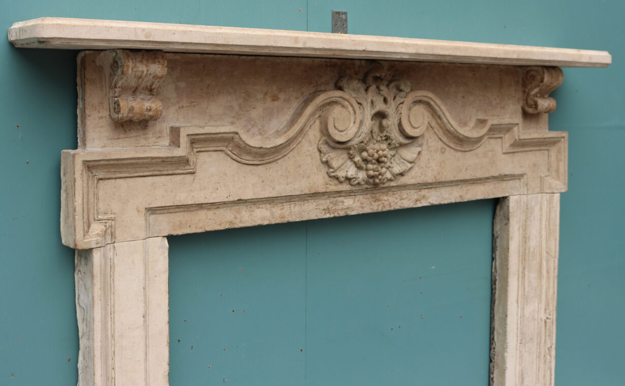 A mid-18th century Painswick Stone chimneypiece in the Palladian style.