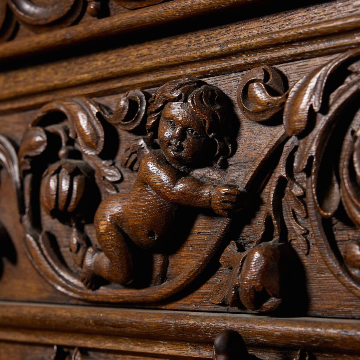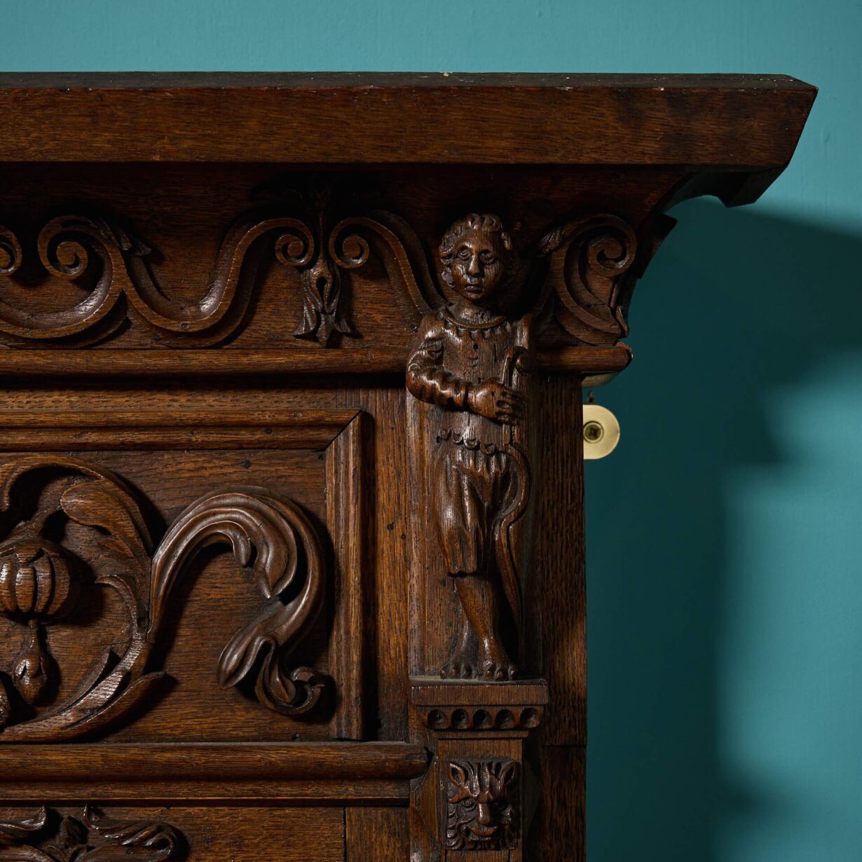 Formerly a fireplace overmantel, this oak panel has been repurposed as a handsome wall decor piece or unique bed head where its skilled craftsmanship and beauty can be celebrated and observed in close detail.