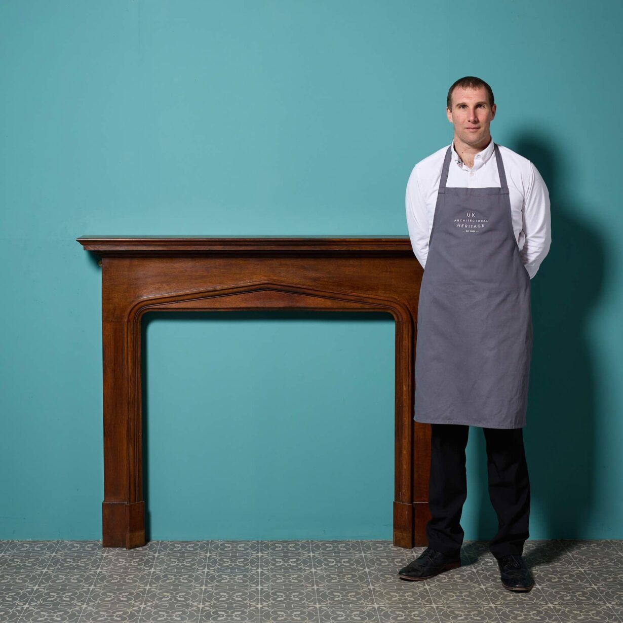 back to topAn antique Edwardian style oak fire mantel by quality artisan makers Bratt Colbran.
