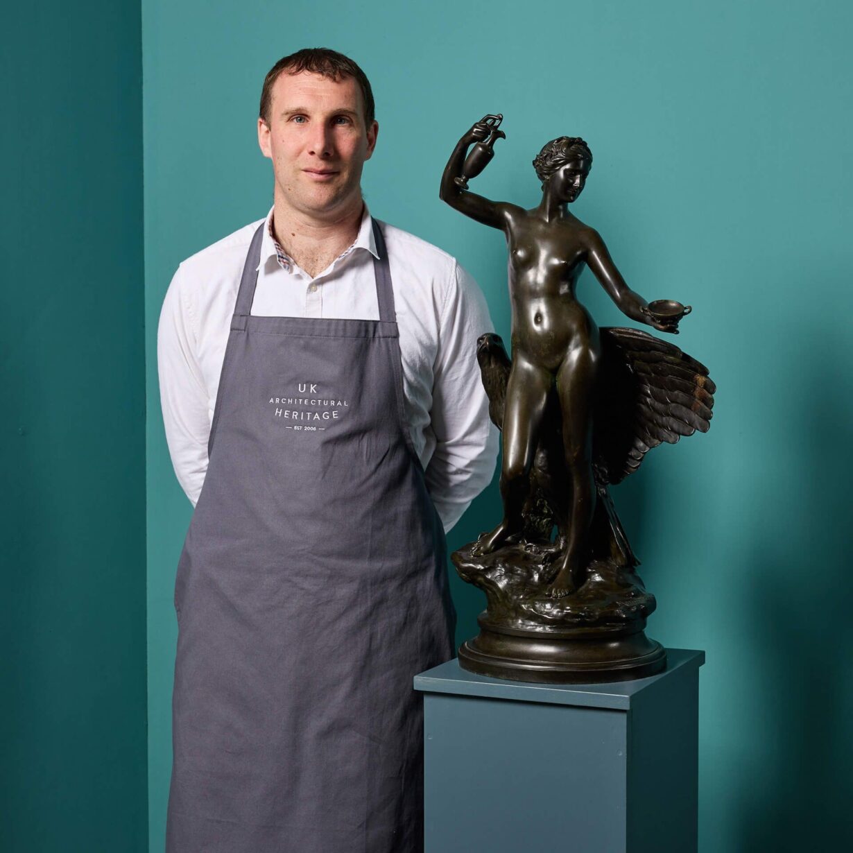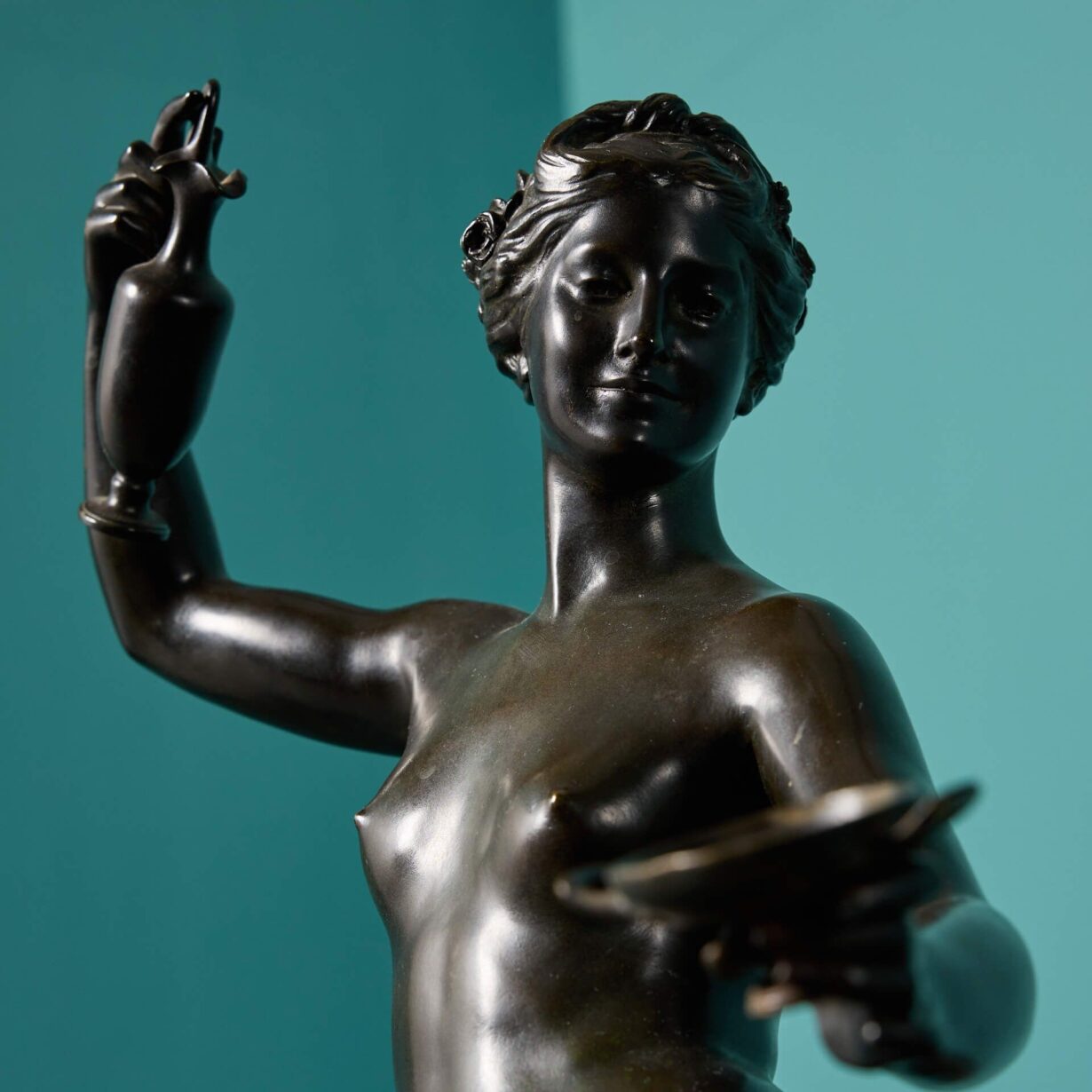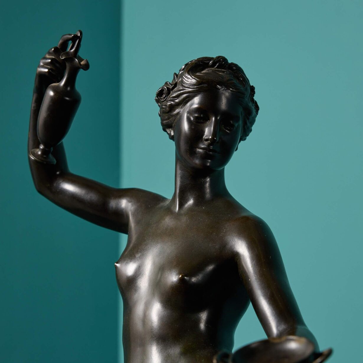 back to topAn antique bronze sculpture depicting Hebe and Jupiter’s eagle, after Laurent-Honore Marqueste.