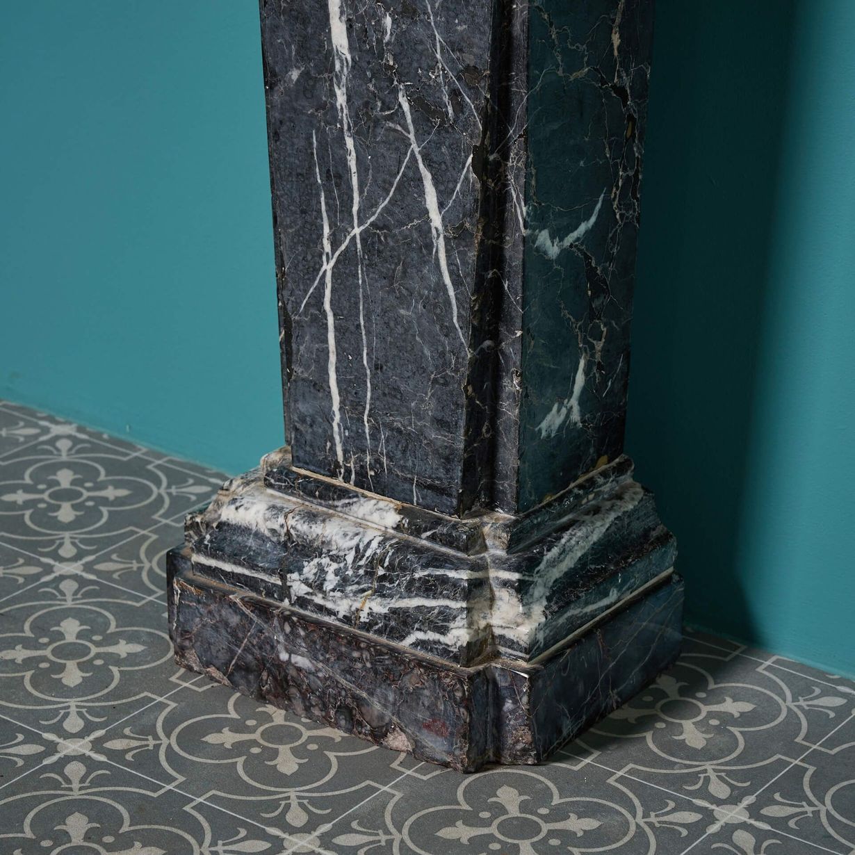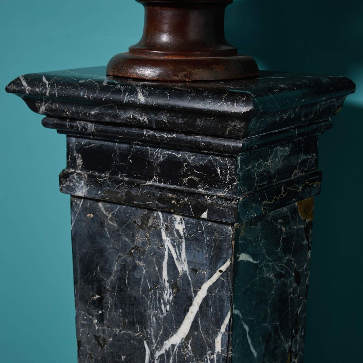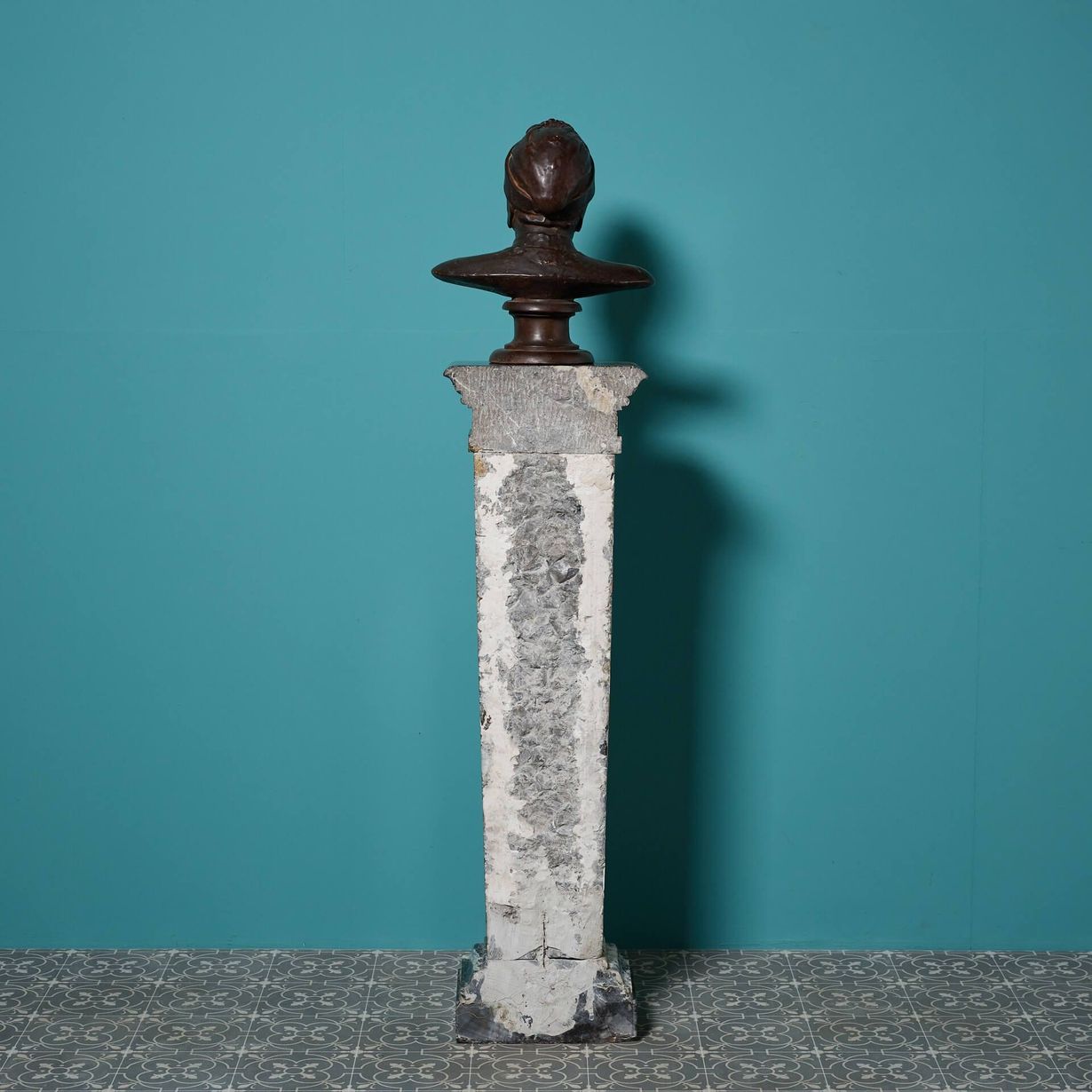 The bust is presented on an elegant continental black marquina marble column with a stepped base. Dating from mid 19th century Italy, the three sided column is made up of three pieces that do not separate.