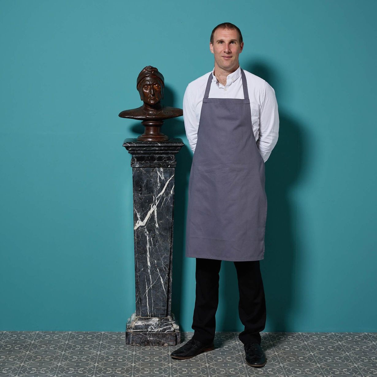The bust is marked ‘Dan’ to its left shoulder, ’Tes’ on the right, and ‘727 R’ to the back.