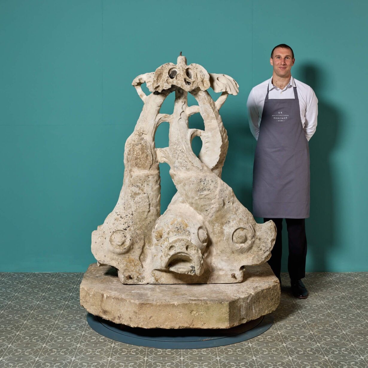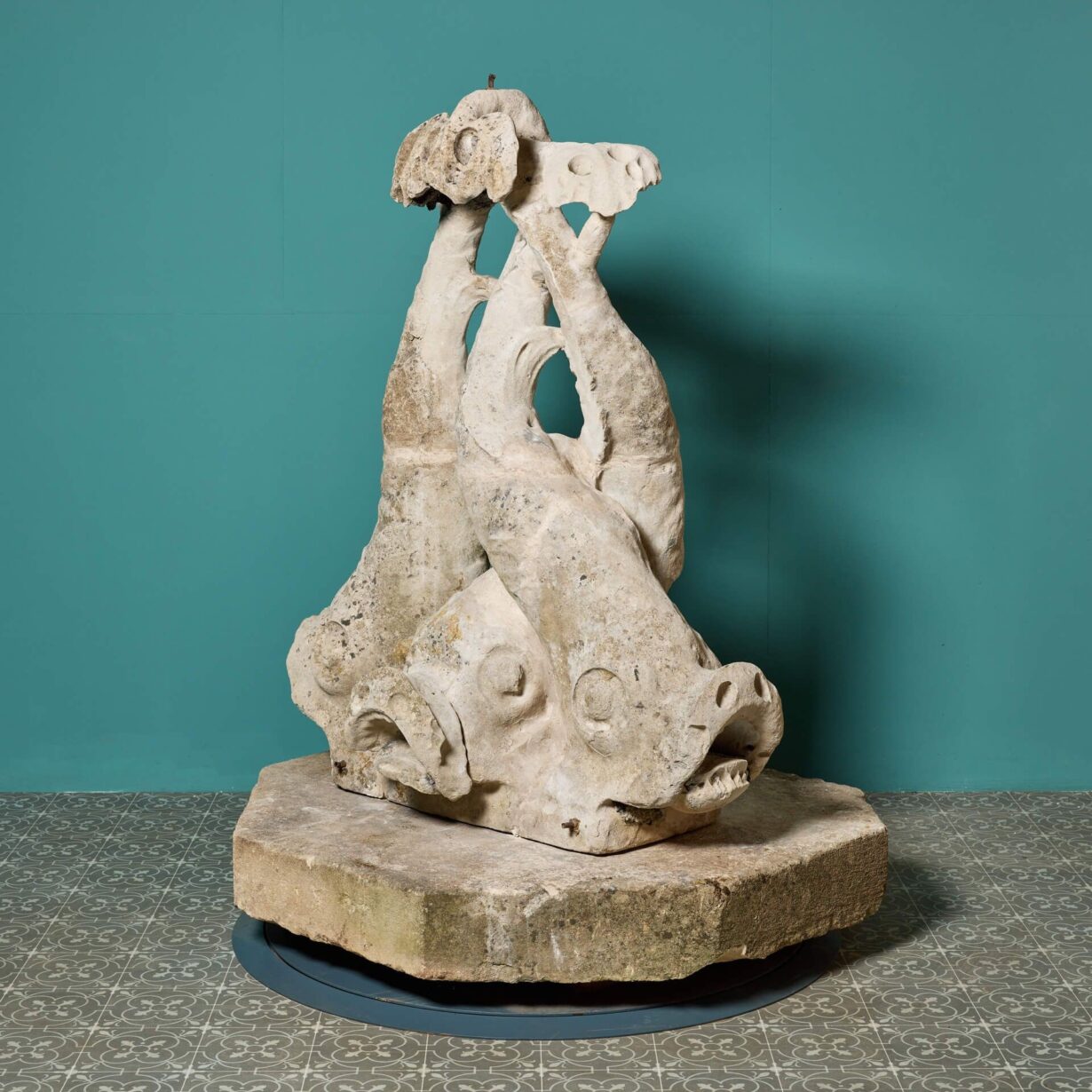 back to topA grand antique mid 19th century hand-carved Portland stone fountain with intwined fish. Previously a fountain from the grounds of the Royal Observatory, in London, its large scale and unusual design would certainly make a brilliant new addition to any property. Incorporating Victorian and Georgian style, it could be used as a decorative garden piece or fountain centrepiece, as it was originally.