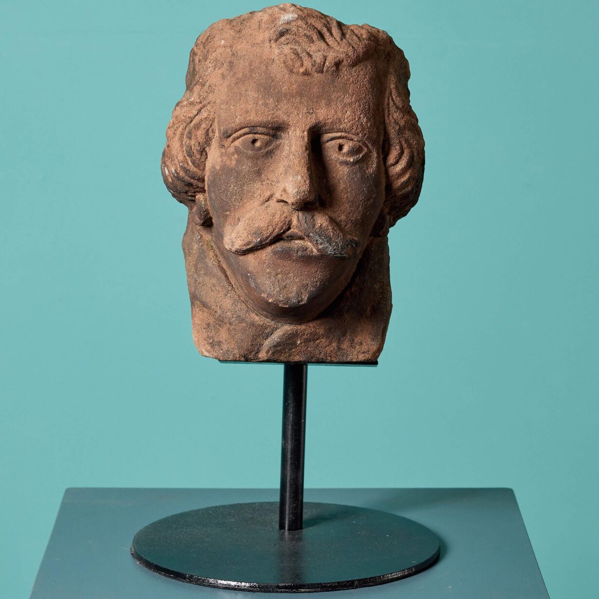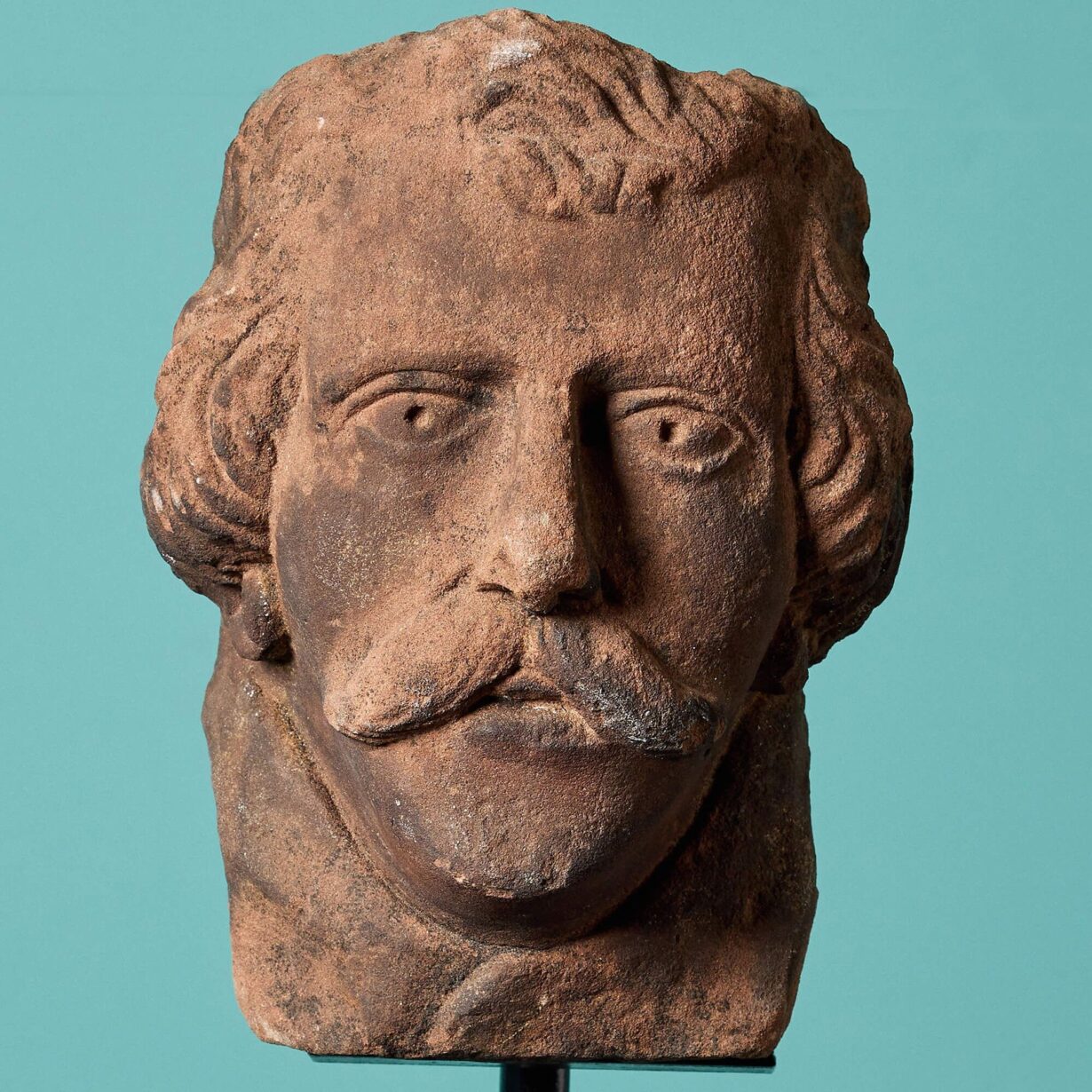 back to topAntique carved sandstone head dating back to 1800. This carefully crafted piece has certainly stood the test of time – at 200 years old the details of this distinguished gentlemen are still very much intact. He is a moustached man, with a Victorian look, giving a deep and direct stare.