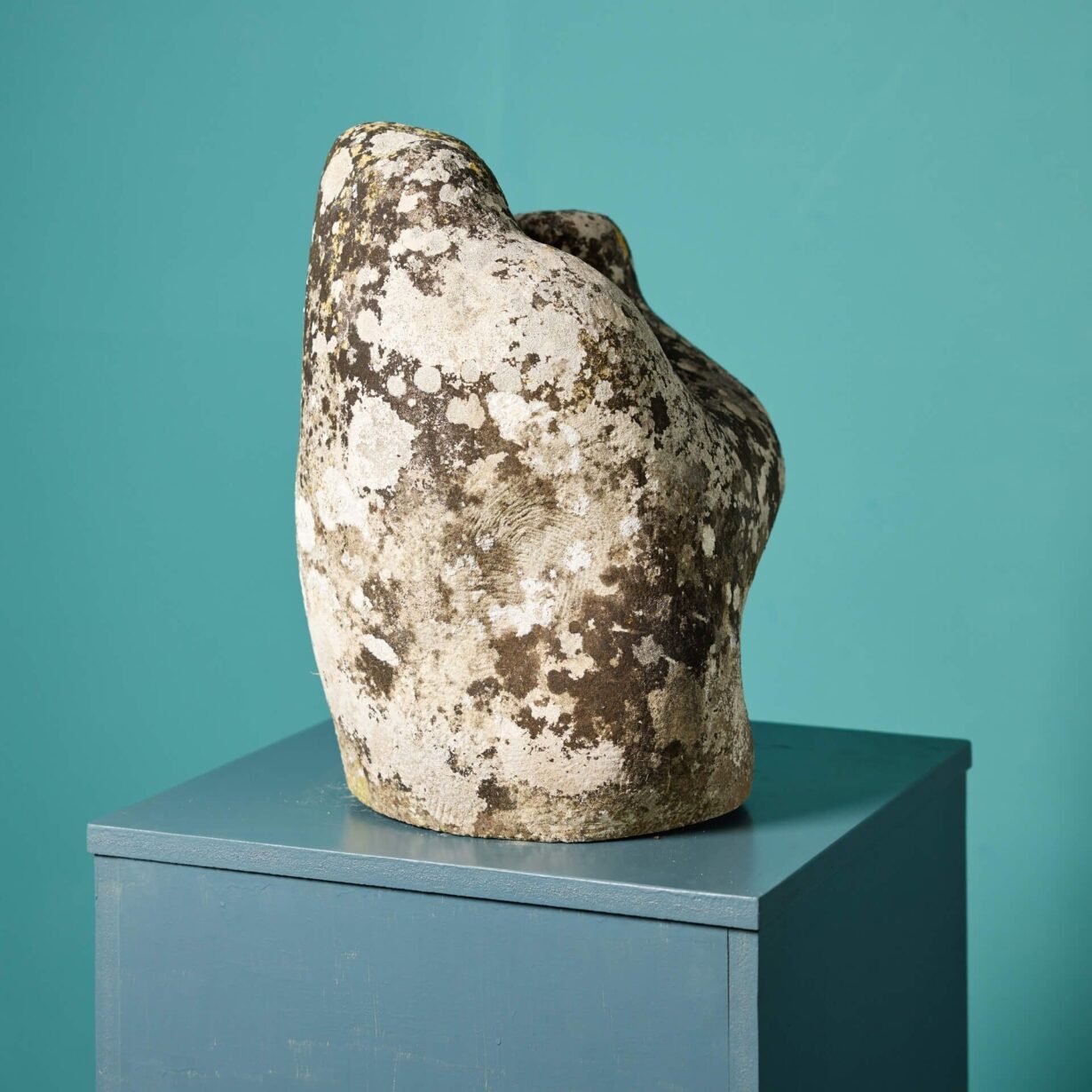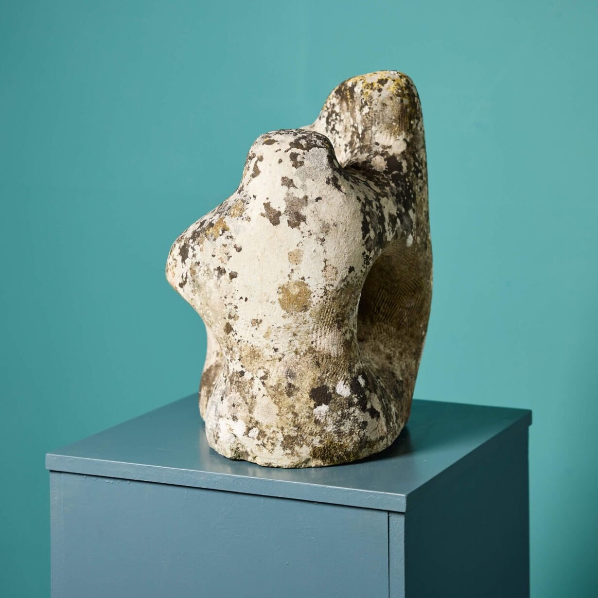 back to topThis weathered antique abstract carved Portland stone statue was reputedly carved by a student of 20th century British architect and artist, Sir Hugh Casson. It depicts a two figures embracing in a stylised abstract position.