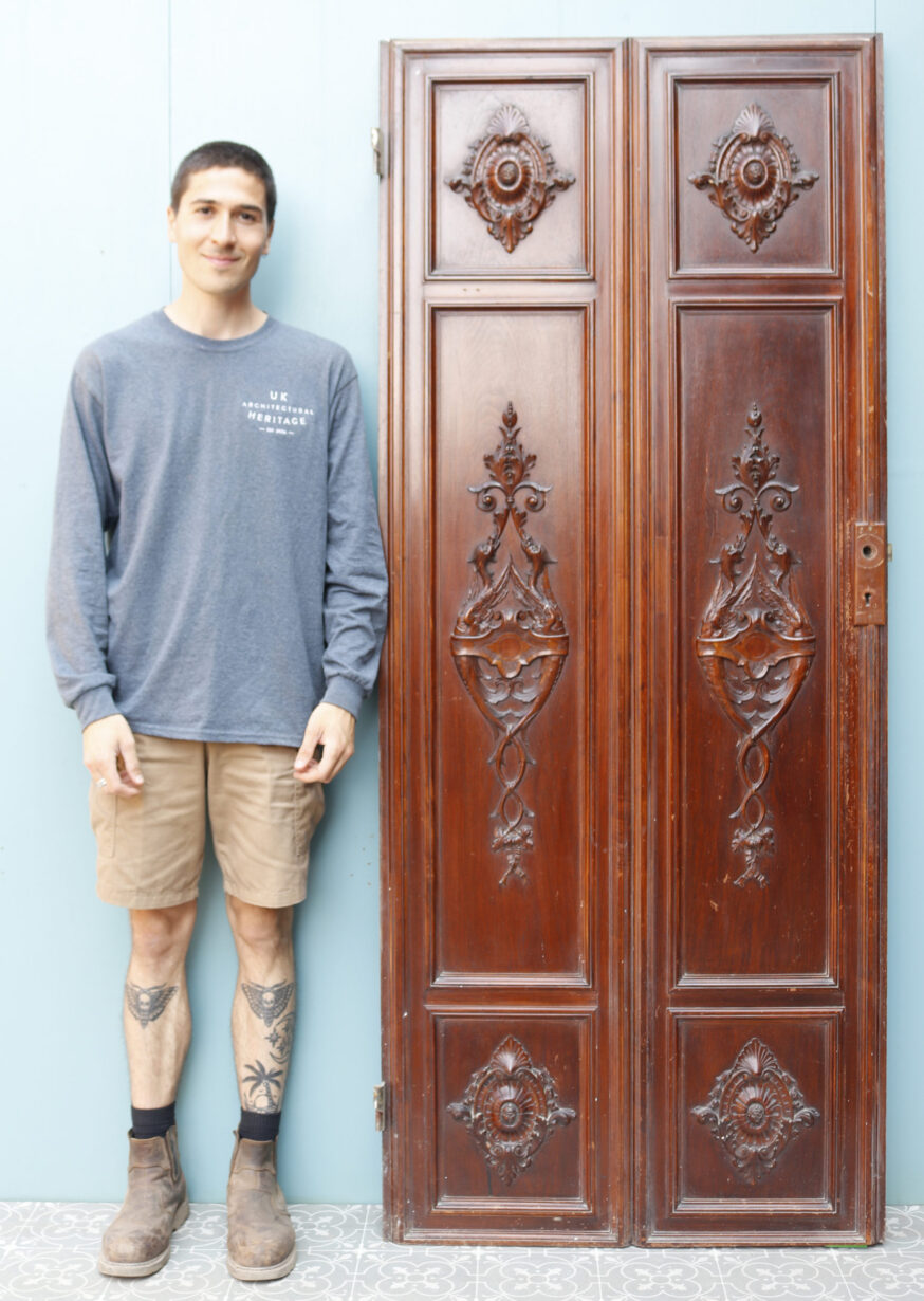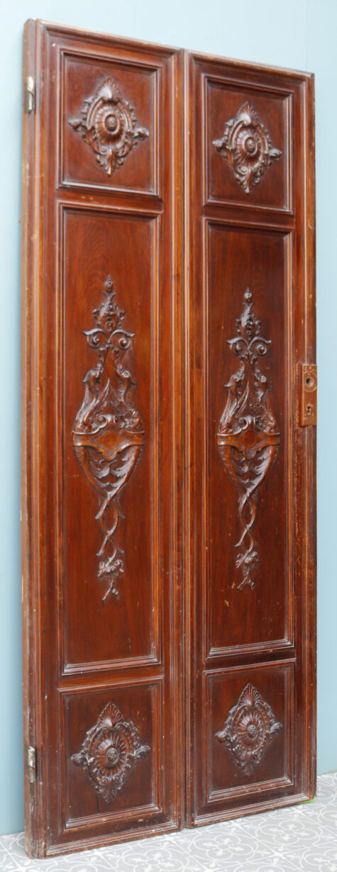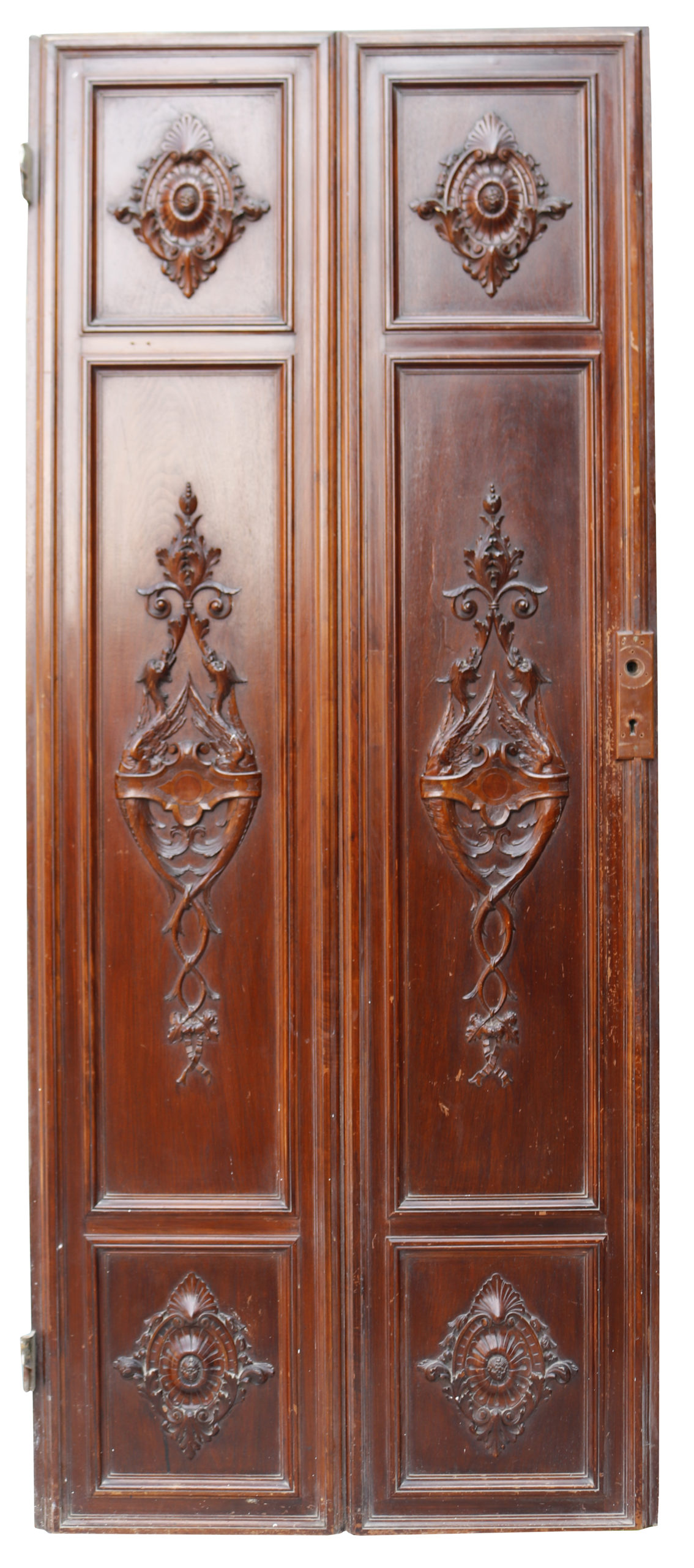 back to topAntique Carved Walnut Door. This French, early 20th century door includes carved leaf patterns in a grand design on all six panels. A very decorative interior door in Louis XVI style. If you need help choosing your antique door, please take a look at our buying guide.