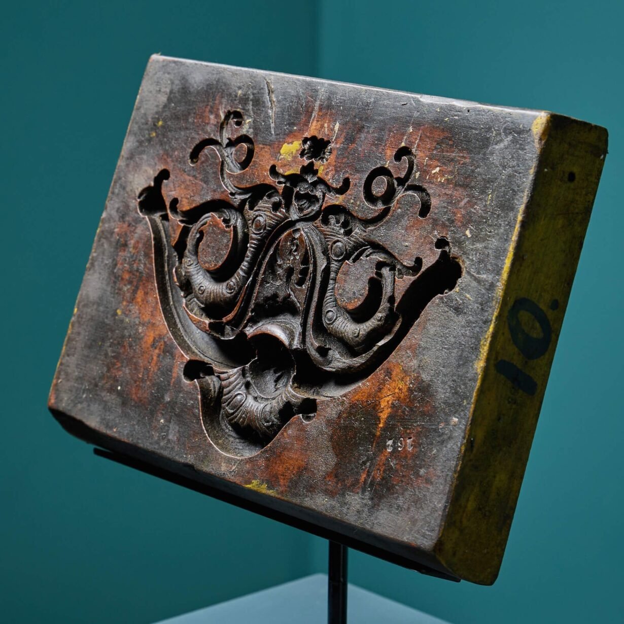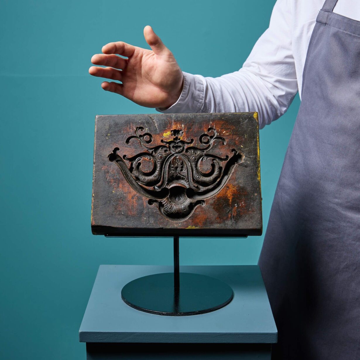 Following Tucker’s death in 2022, his expansive collection of film memorabilia was sold, including a vast collection of carved boxwood, fruitwood and hardwood compo moulds, acquired from various sources throughout his career. This mould is just one from his outstanding collection.
