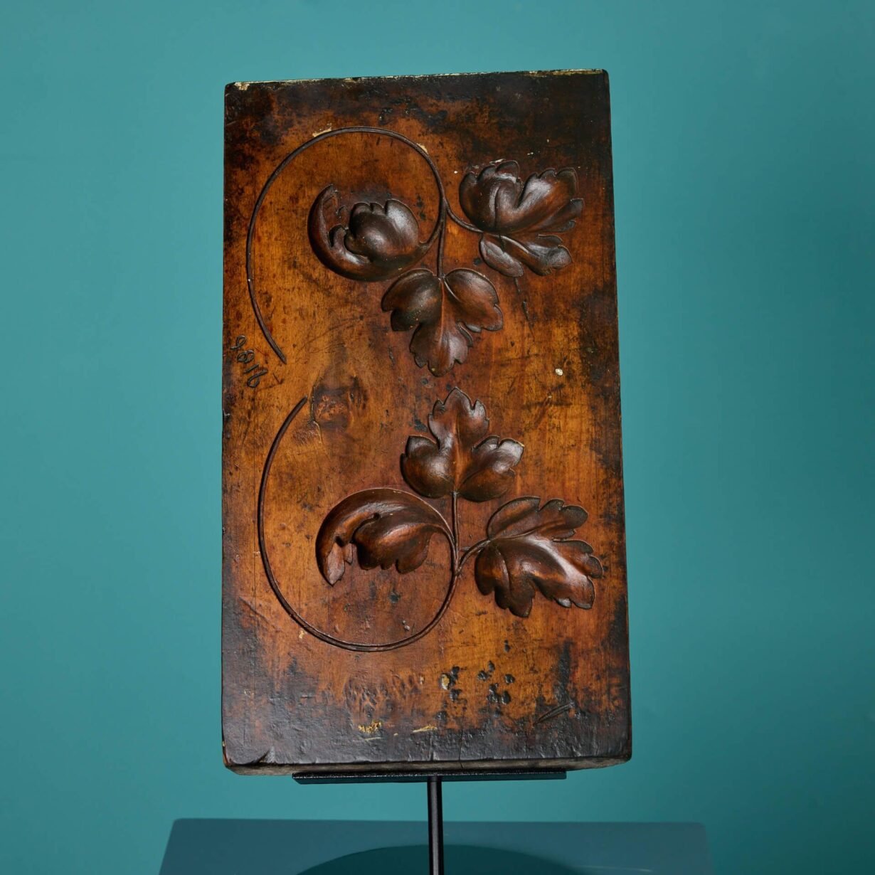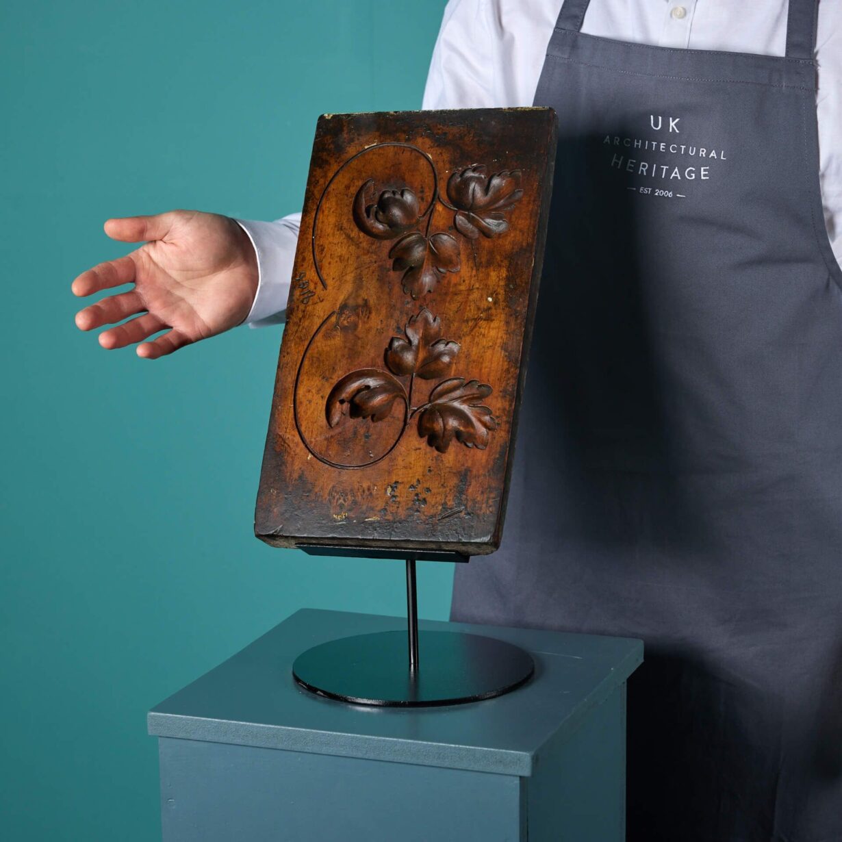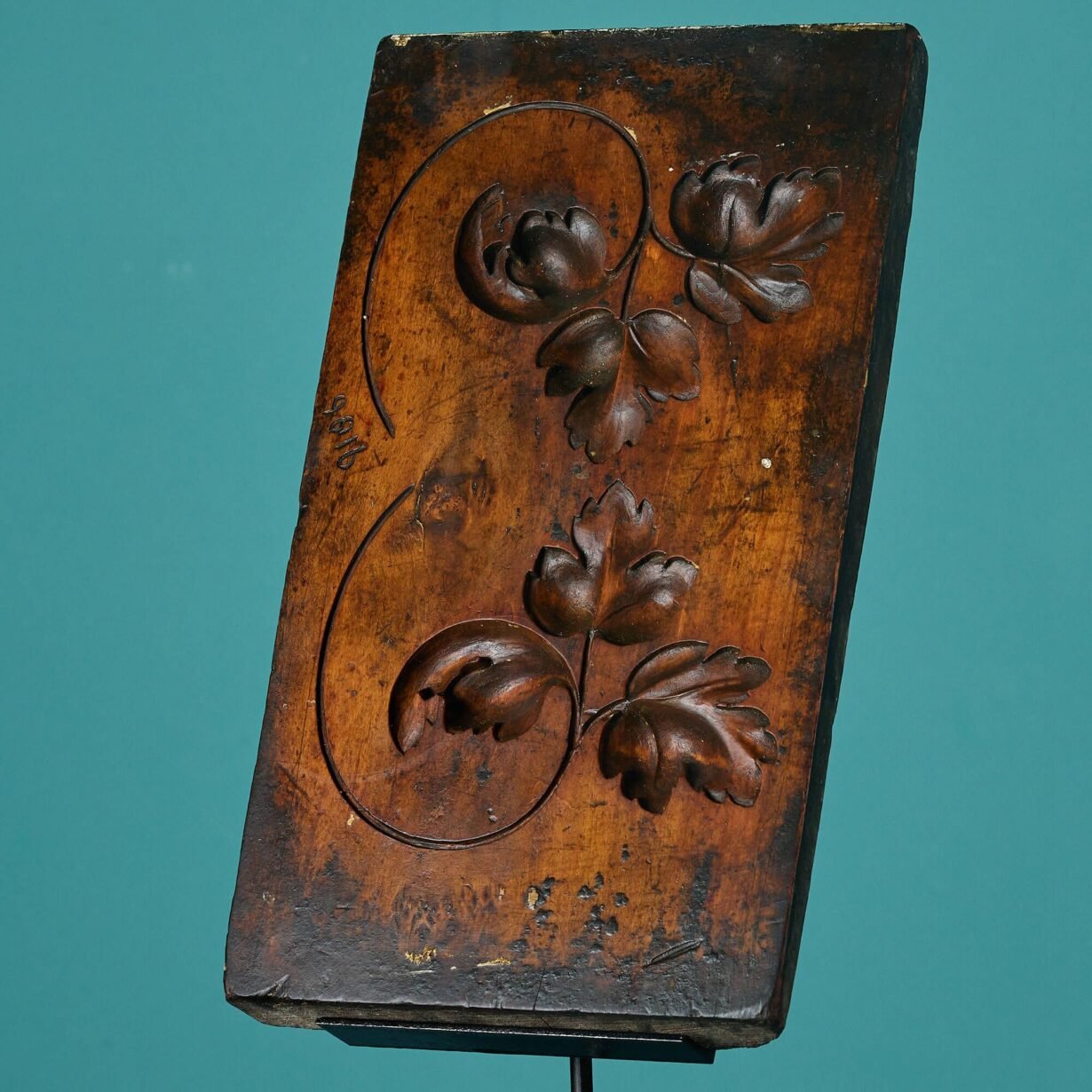 This mould is inscribed with design number 9186 to the front and features a beautiful design deeply carved into the wood. This results in a highly ornate and precise compo embellishment that appears as though it has been carved rather than cast. The wooden mould comes with an accompanying custom-made steel display stand.