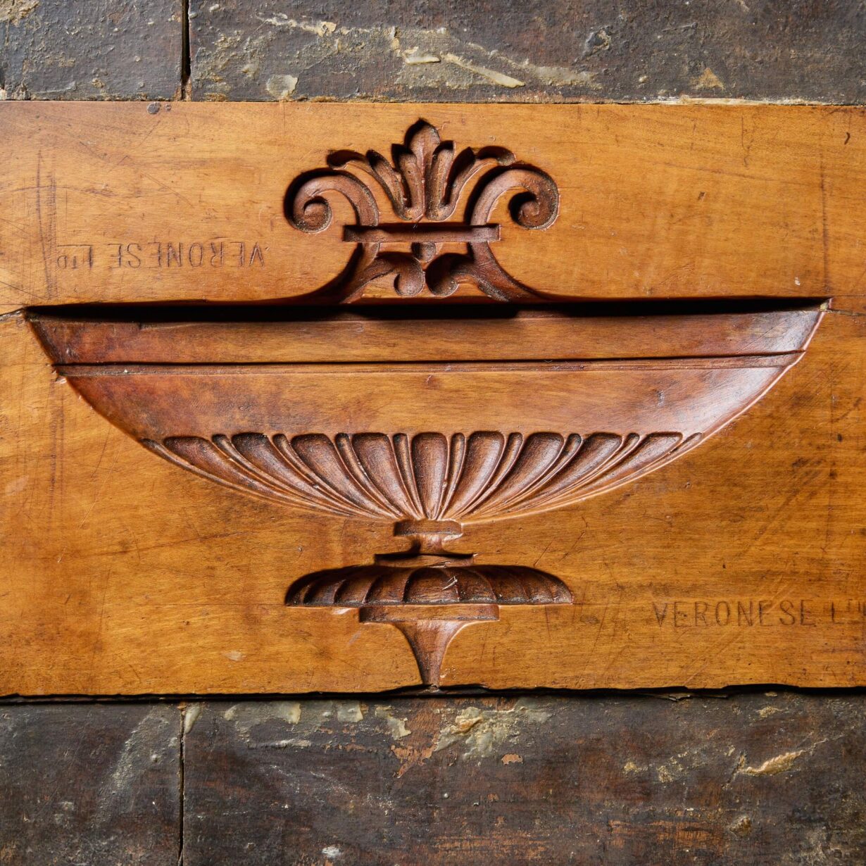 Following Tucker’s death in 2022, his expansive collection of film memorabilia was sold, including a vast collection of carved boxwood, fruitwood and hardwood compo moulds, acquired from various sources throughout his career. This mould is just one from his outstanding collection.