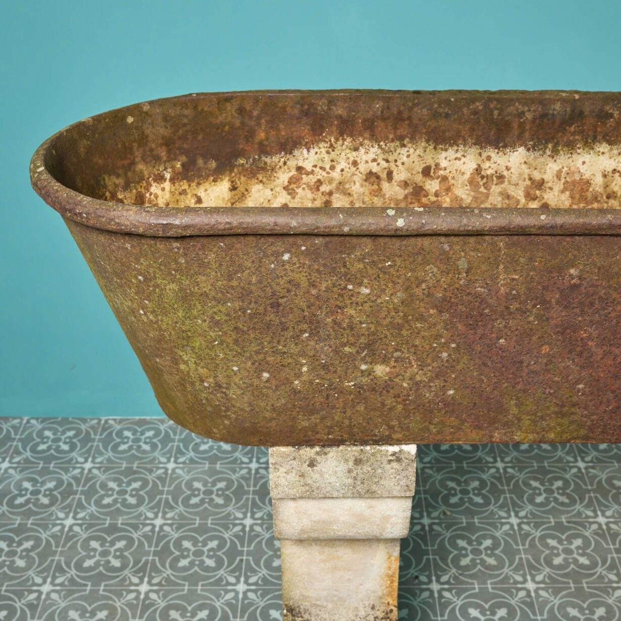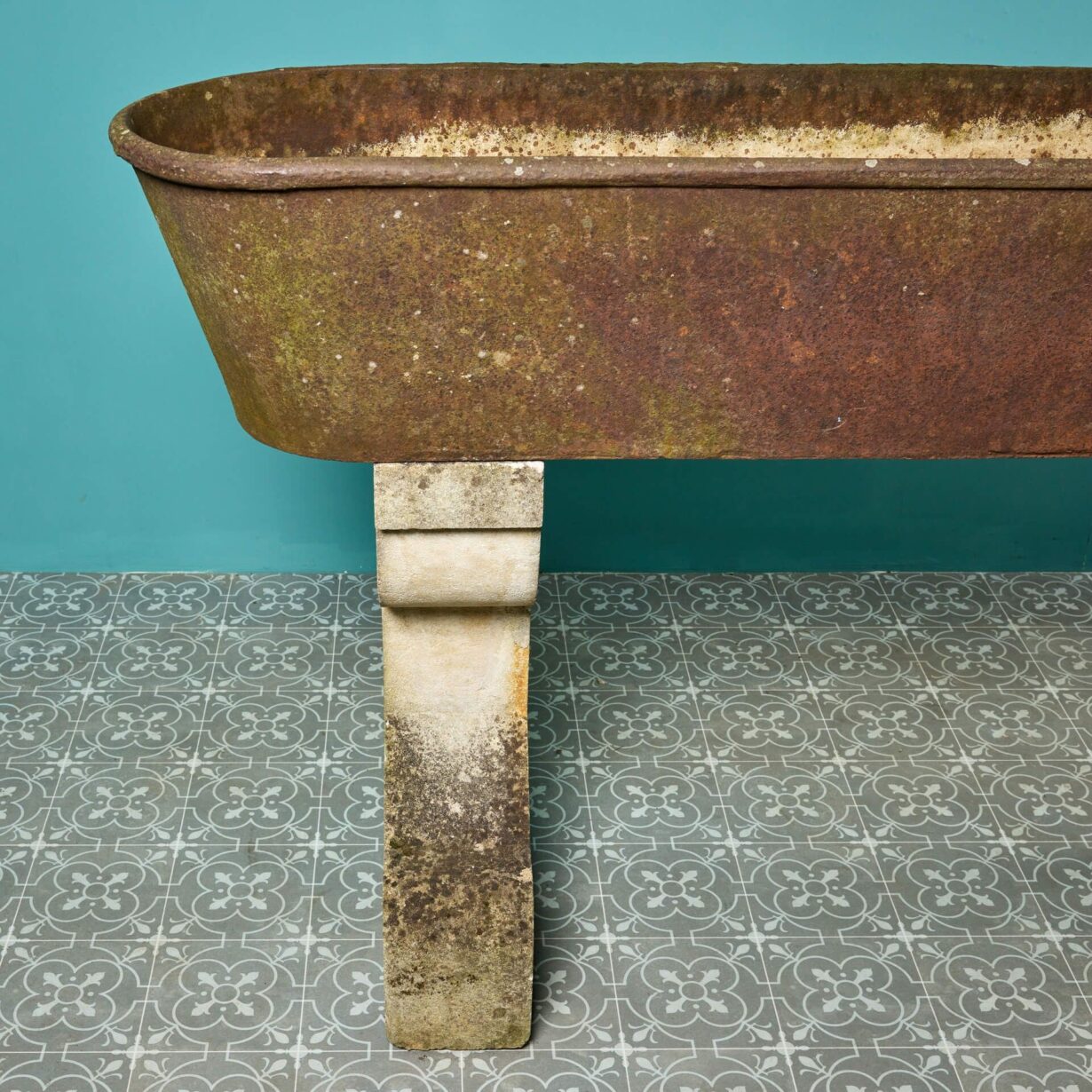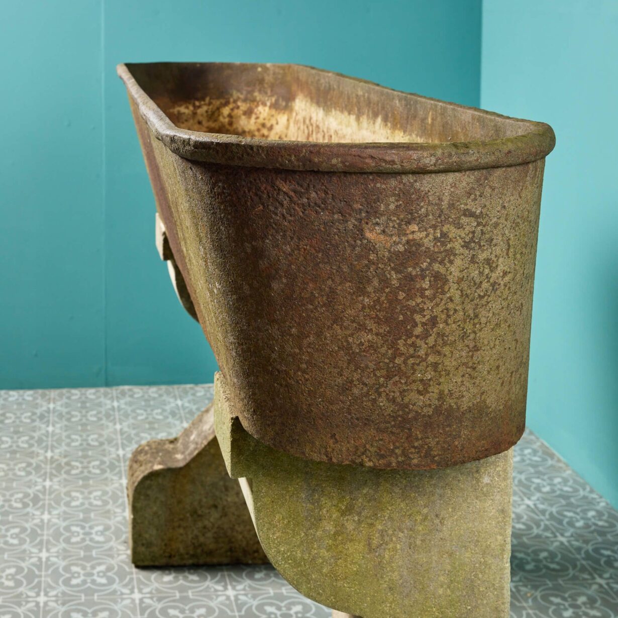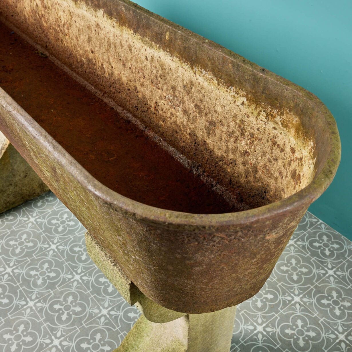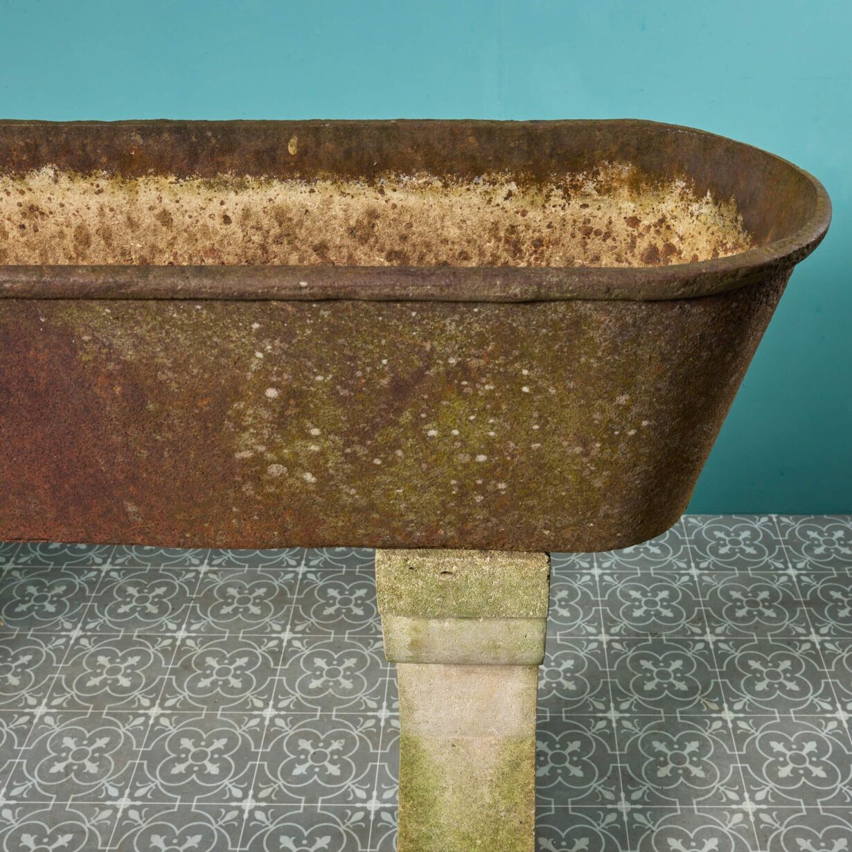 back to topThis Victorian era antique cast iron trough is a beautiful feature for a traditional garden or country courtyard. Once used as a water trough, it is elevated by a pair of shaped limestone stands, making it ideal for use as a large, raised planter for flowers and garden greenery. Dating from the late 19th century, this large cast iron trough is over 130 years old. As such, it is instilled with characteristic weathering that only exposure to the elements through time can create, telling the story of a 19th century English garden or farm.