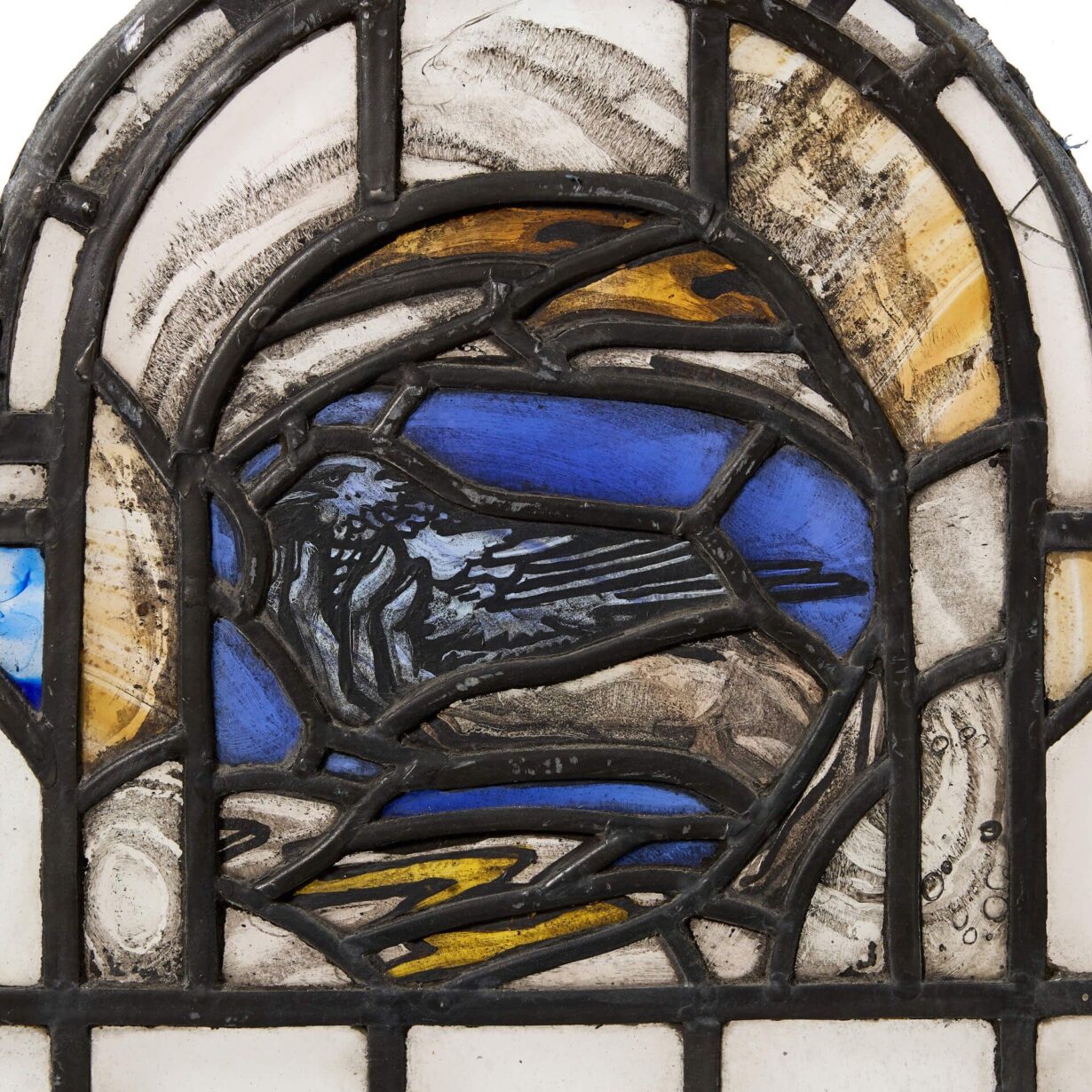 back to topA simple yet elegant antique ecclesiastical multi-arched stained glass panel of a dove scene.