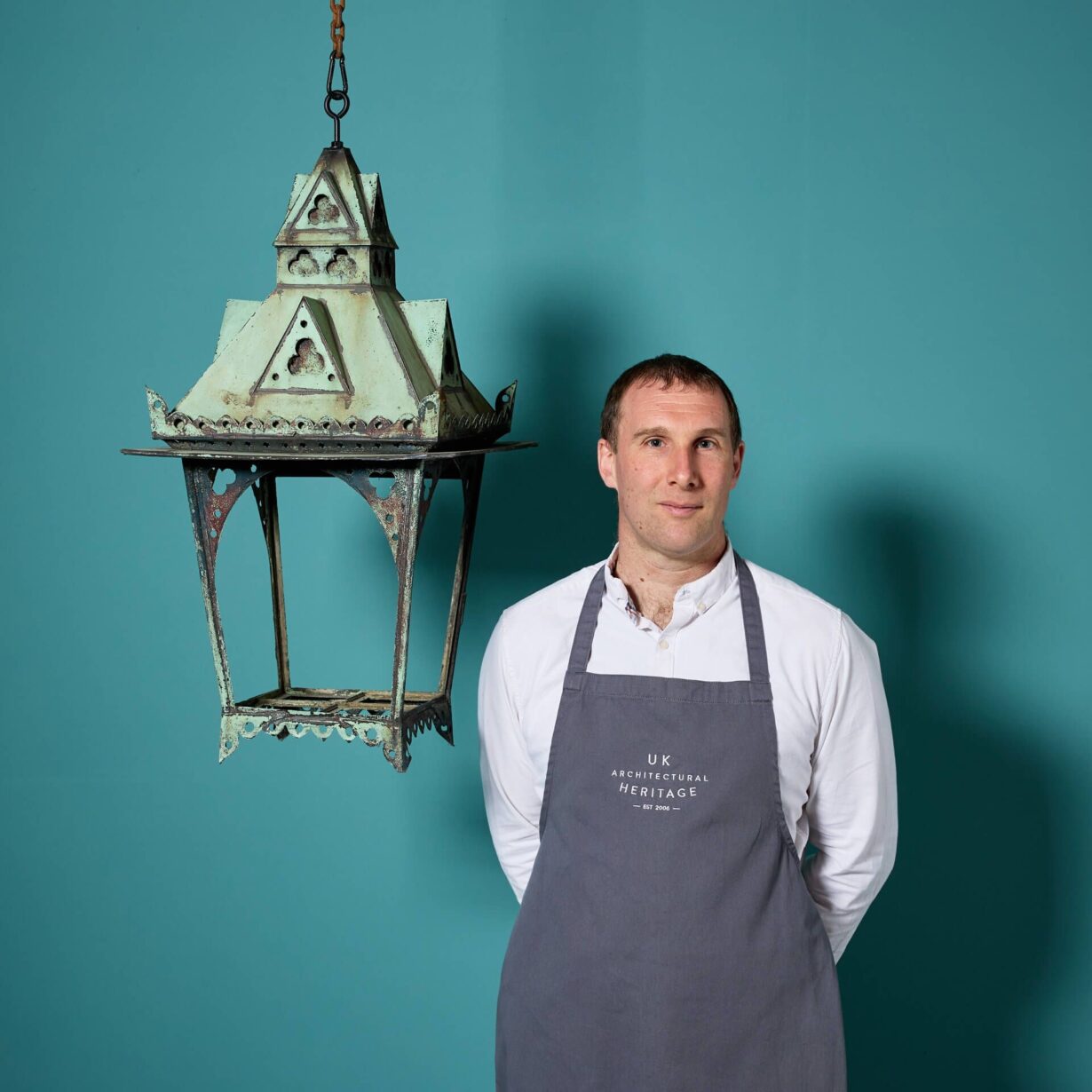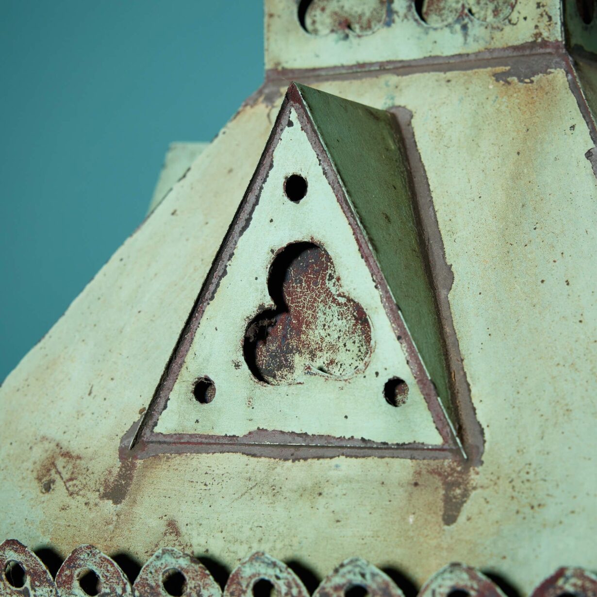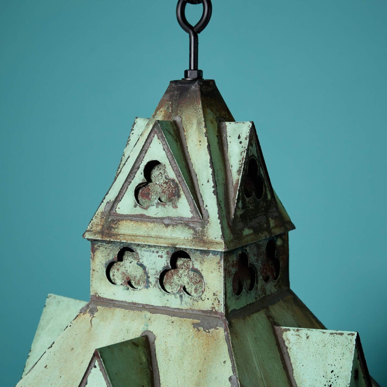 This lantern is beautifully styled incorporates an array of styles, complimented by its weathered copper creating an unusual eye-catching verdigris patination.