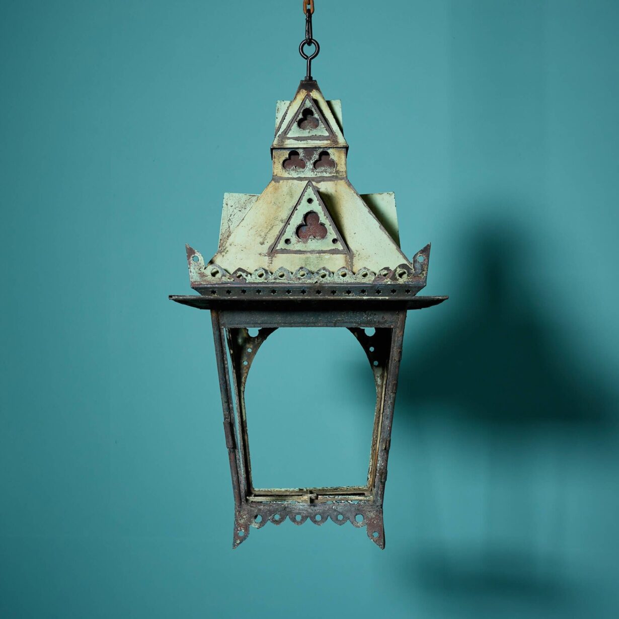back to topAn antique English copper wall hanging lantern dating to the late 19th century, suitable for indoor or outdoor use.