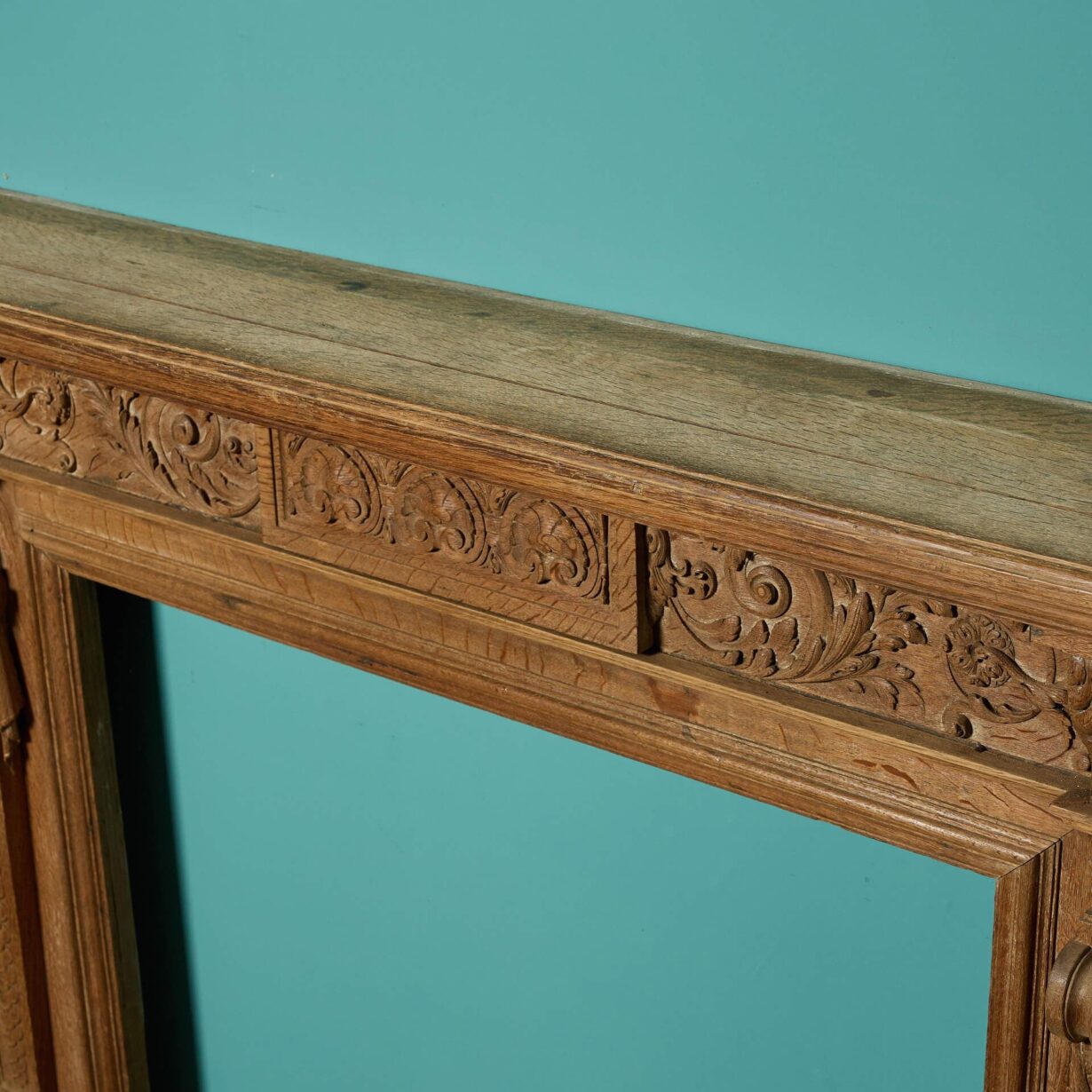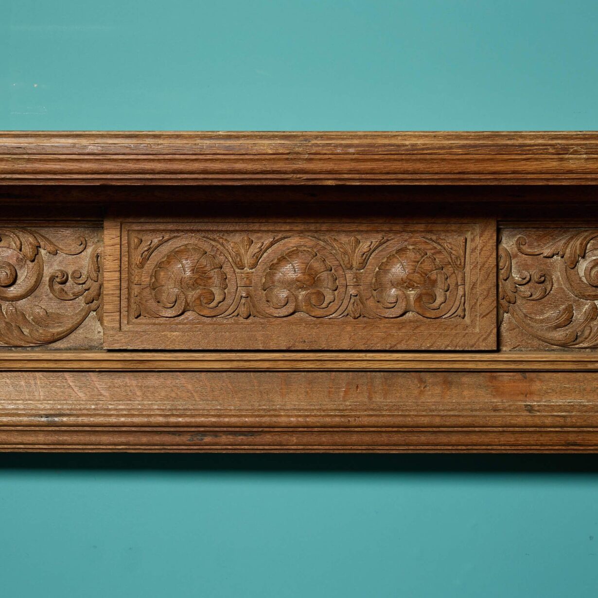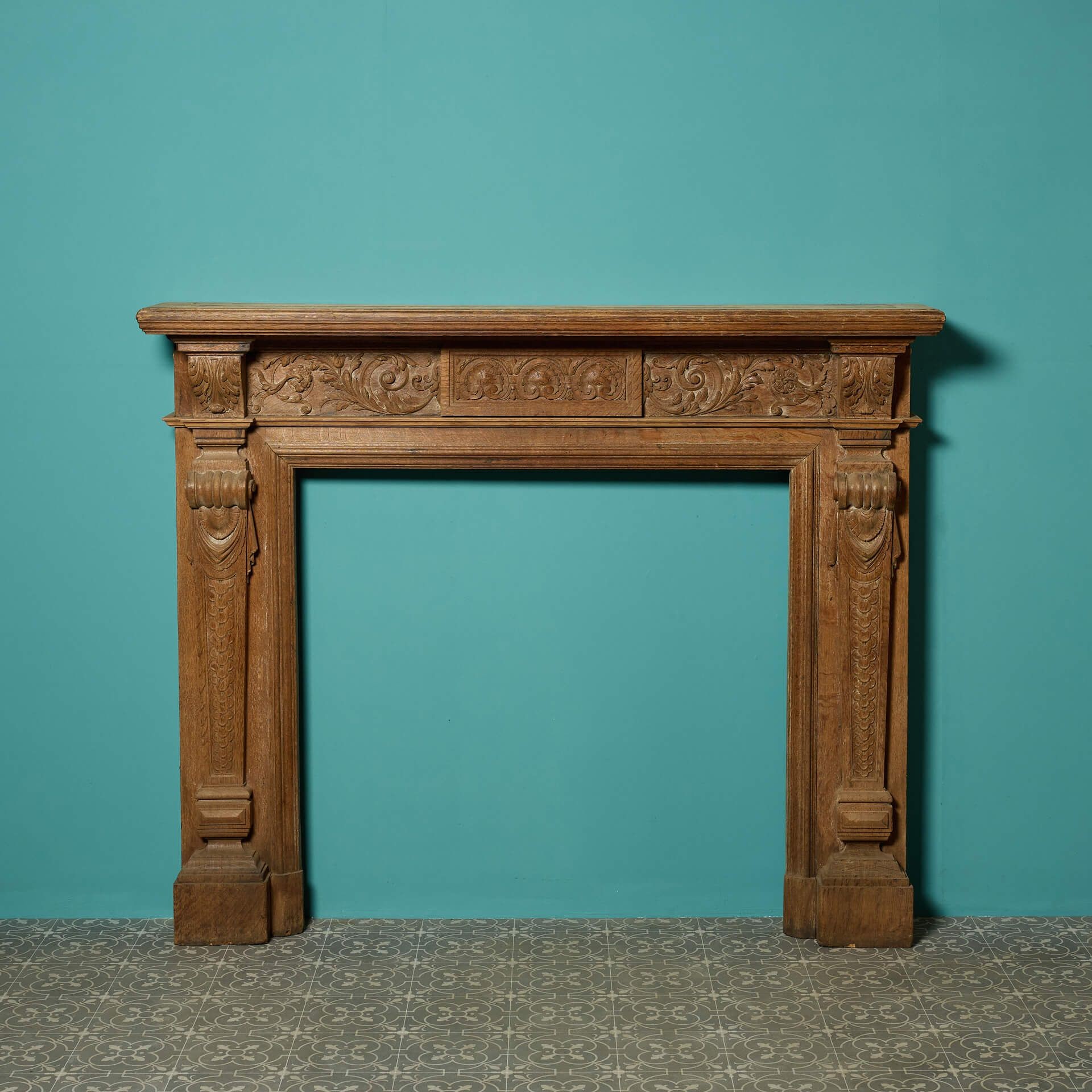 back to topA good quality and beautifully carved antique English oak fire surround, dating from the late Victorian era. Reclaimed from a property in Amersham, this handsome fireplace is constructed from solid oak and features ornate carving throughout. Details include scrolling foliage to the frieze and centre tablet, and carved scrolling columns to the jambs for a flourish of grandeur.