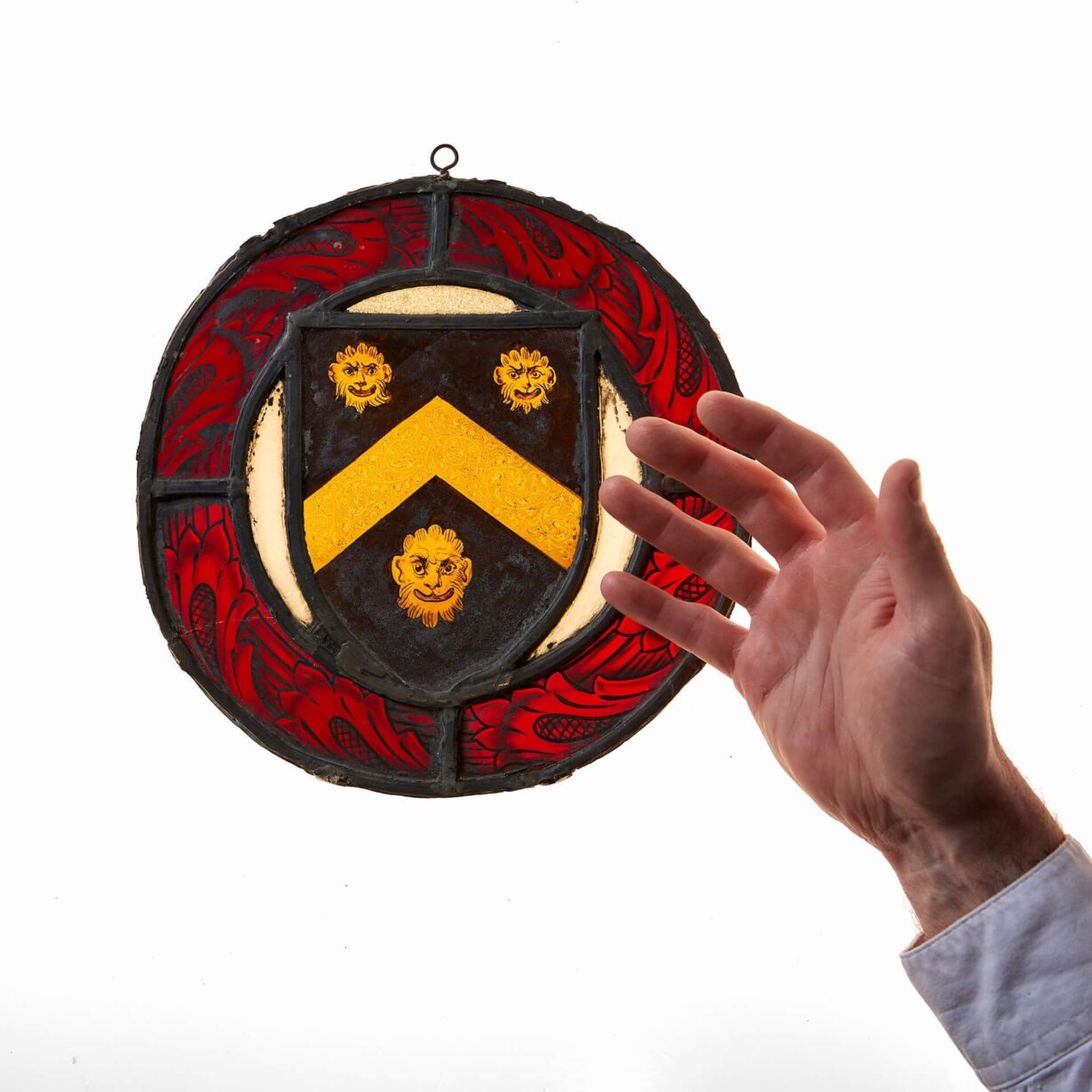back to topAn antique English stained glass heraldic roundel dating to circa 1900.