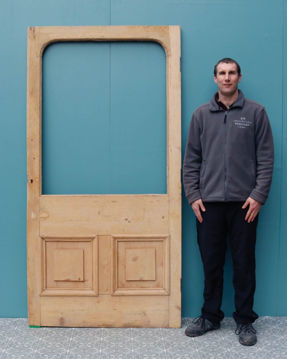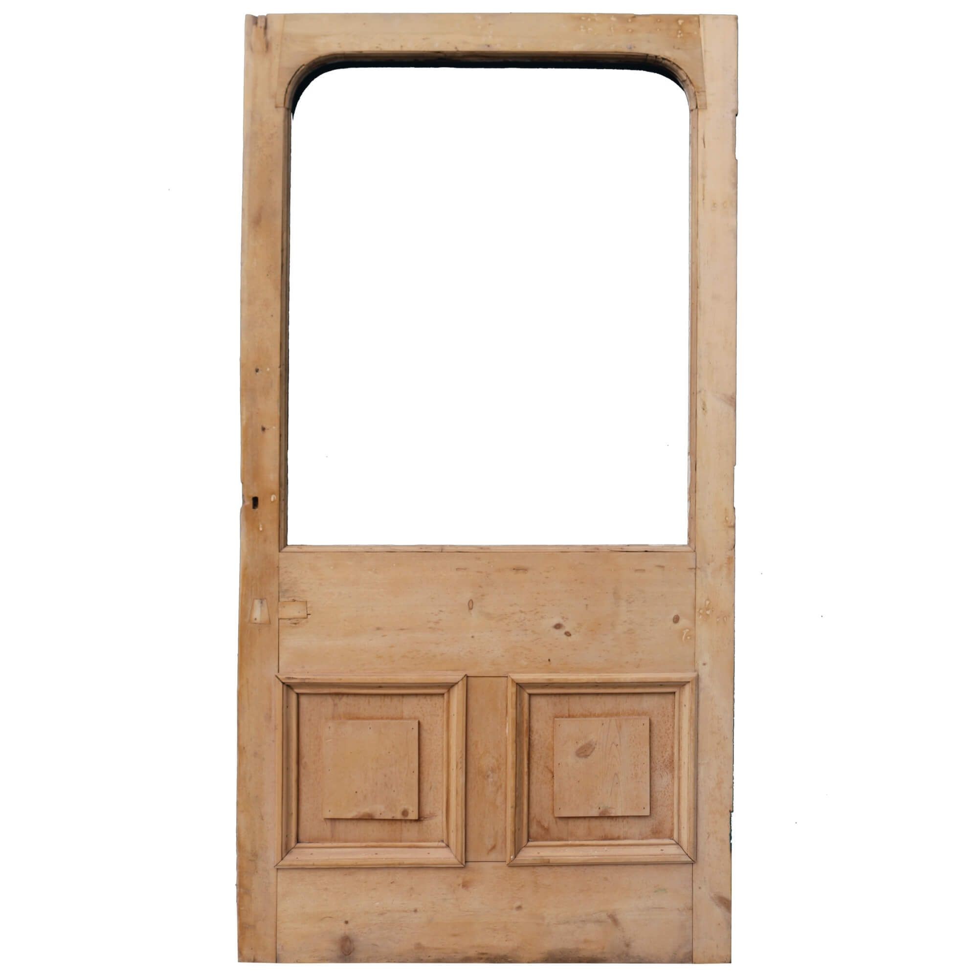 back to topAn unglazed reclaimed Victorian stripped pine door suitable for use as a front door or internal door in any home, old and new. Constructed in pine, this English antique door features a large panel for custom glazing above two raised panel to the front and back. Ready for finishing in paint, stain or wax.