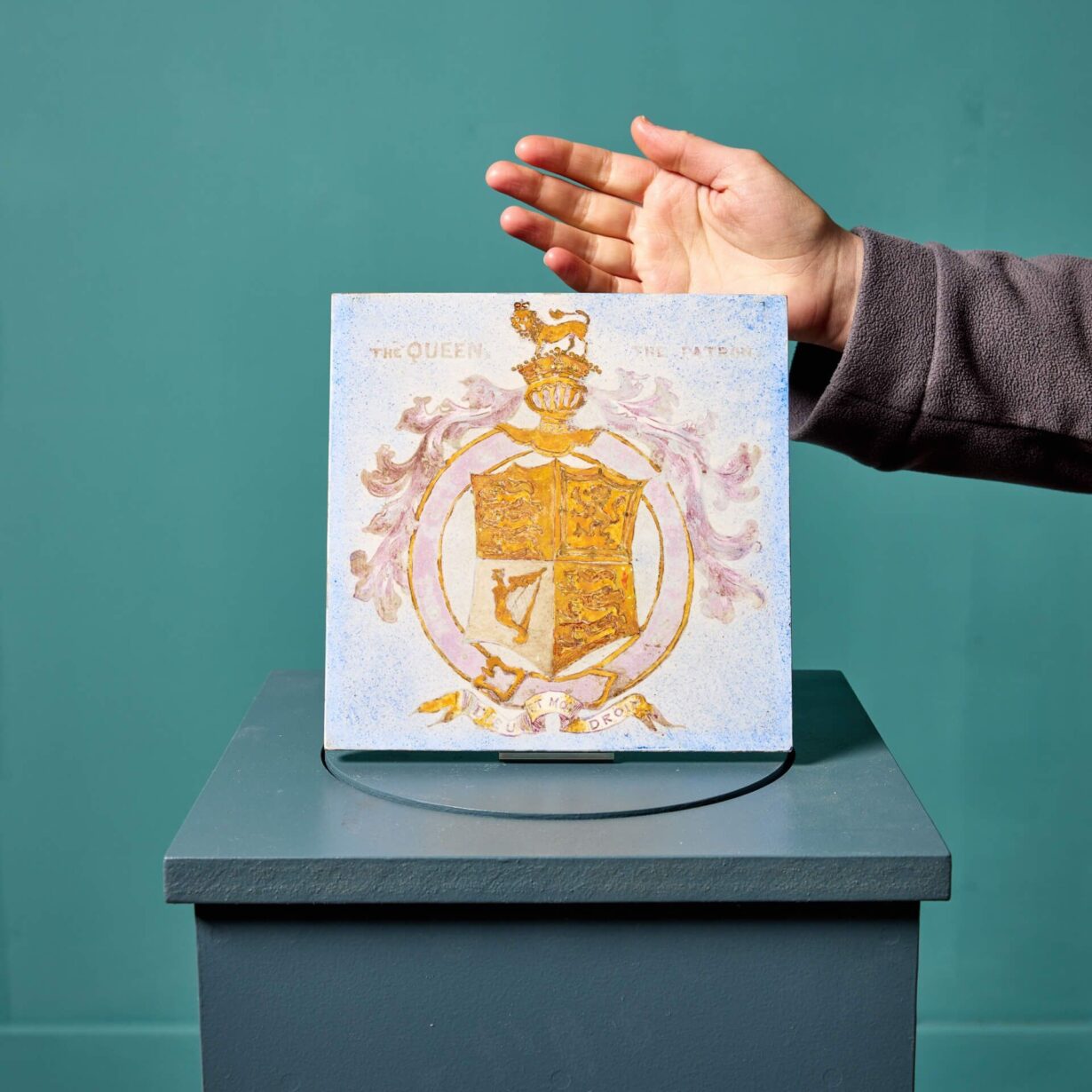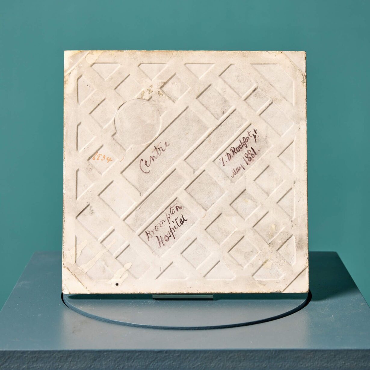 back to topA hand decorated antique English heraldic tile depicting the coat of arms of Queen Victoria, dating from 1881. This porcelain tile is one of 14 similar we are selling, removed from the now demolished library of the Victorian Brompton Consumption Hospital, London. It is dated and signed J. D. Rochfort to the reverse.