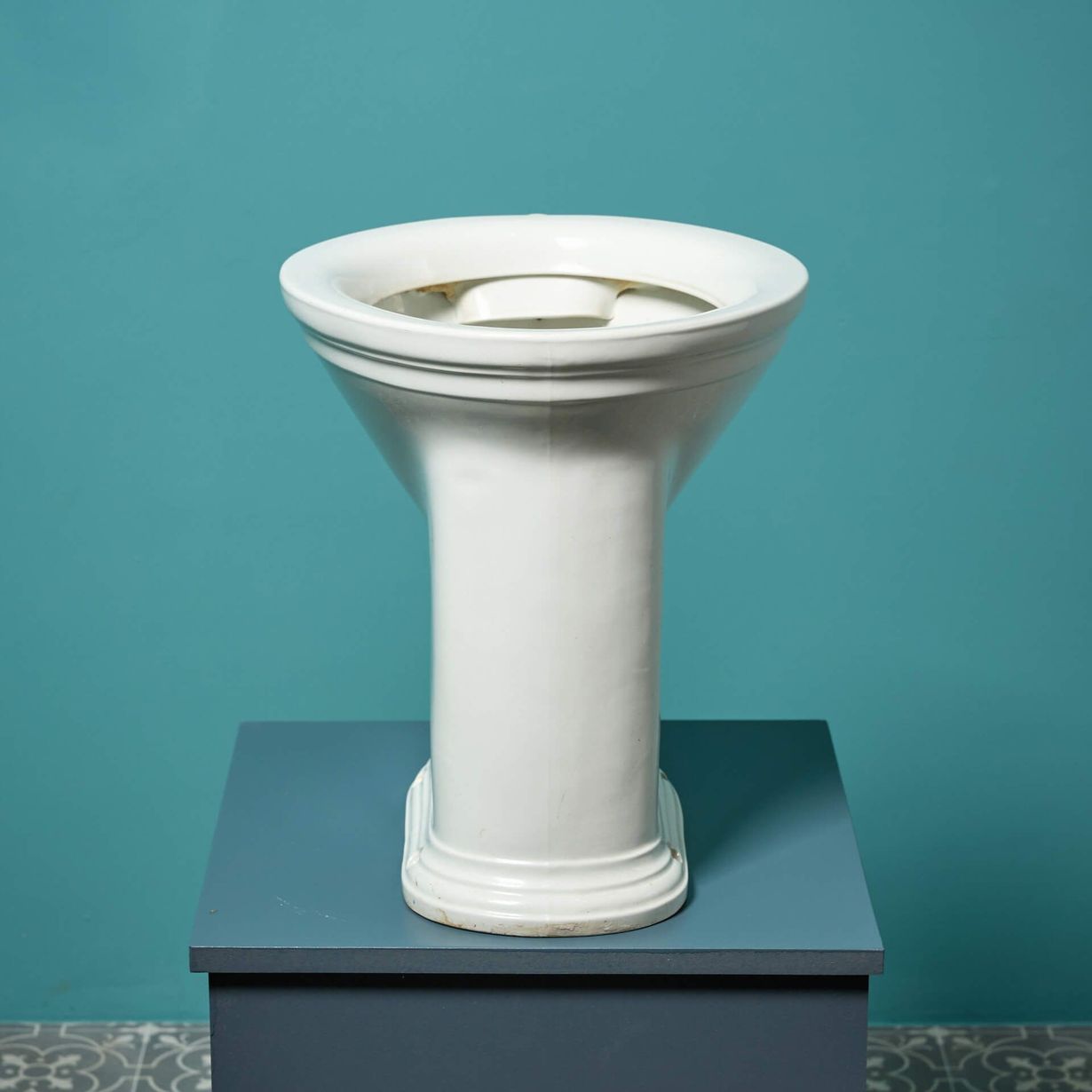 back to topAn ‘Oeneas’ antique English white glazed ceramic toilet with P trap waste. This model is suitable for use with a high-level cistern, making a stunning heritage feature of any bathroom.