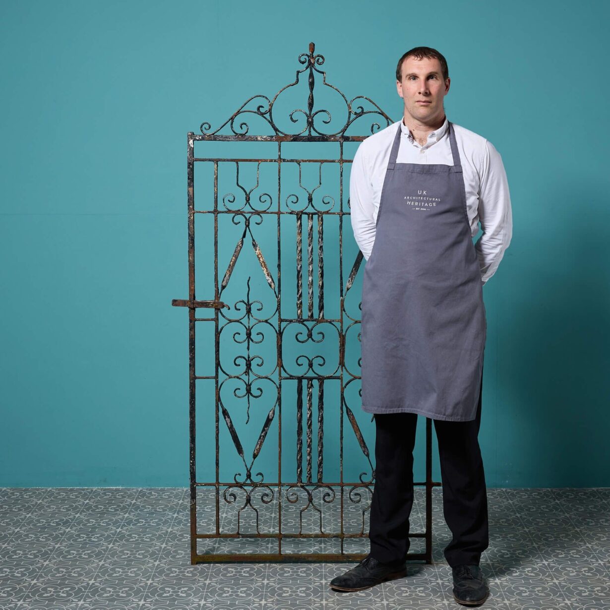 back to topA stunning tall antique wrought iron pedestrian gate in Victorian style, handcrafted by a talented early 20th century blacksmith.