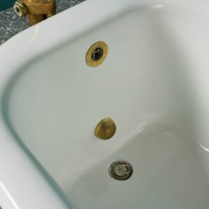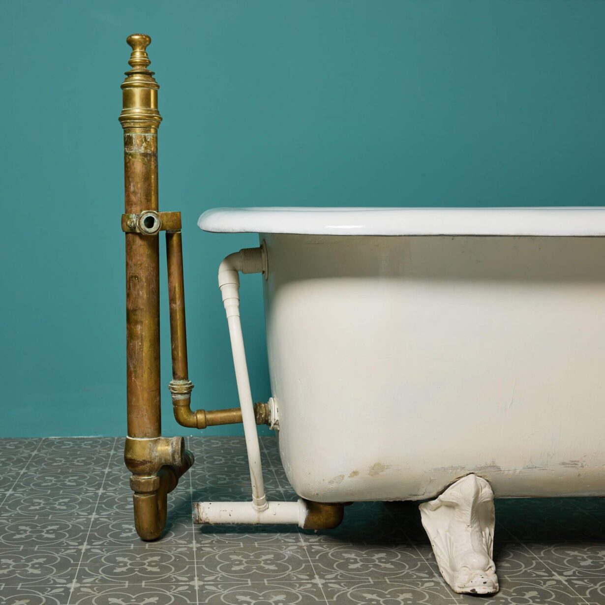 Marked ‘Ewart and Son Ltd’ of Euston Road, London, this antique bath is a rare find. We have only ever seen one other bath by Ewart and Son, who are best known in English history for their water heaters and copper ventilators. For this reason, this copper bath is an unusual piece, becoming the focal point of any antique style bathroom.