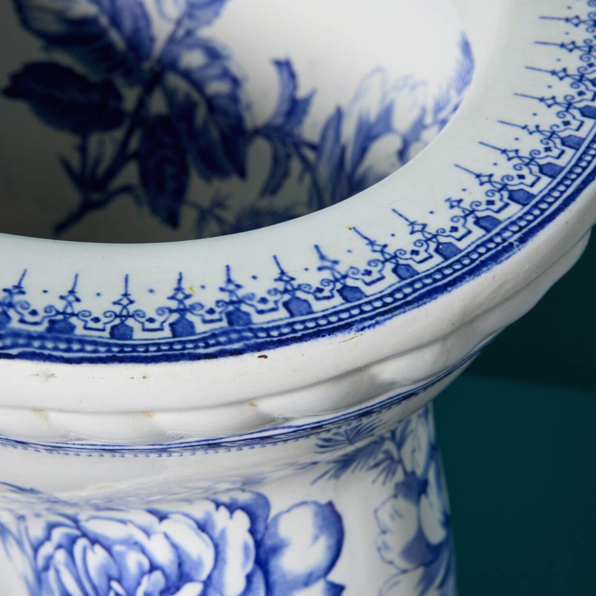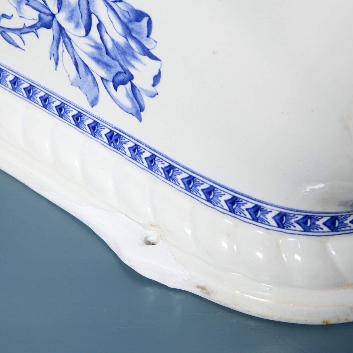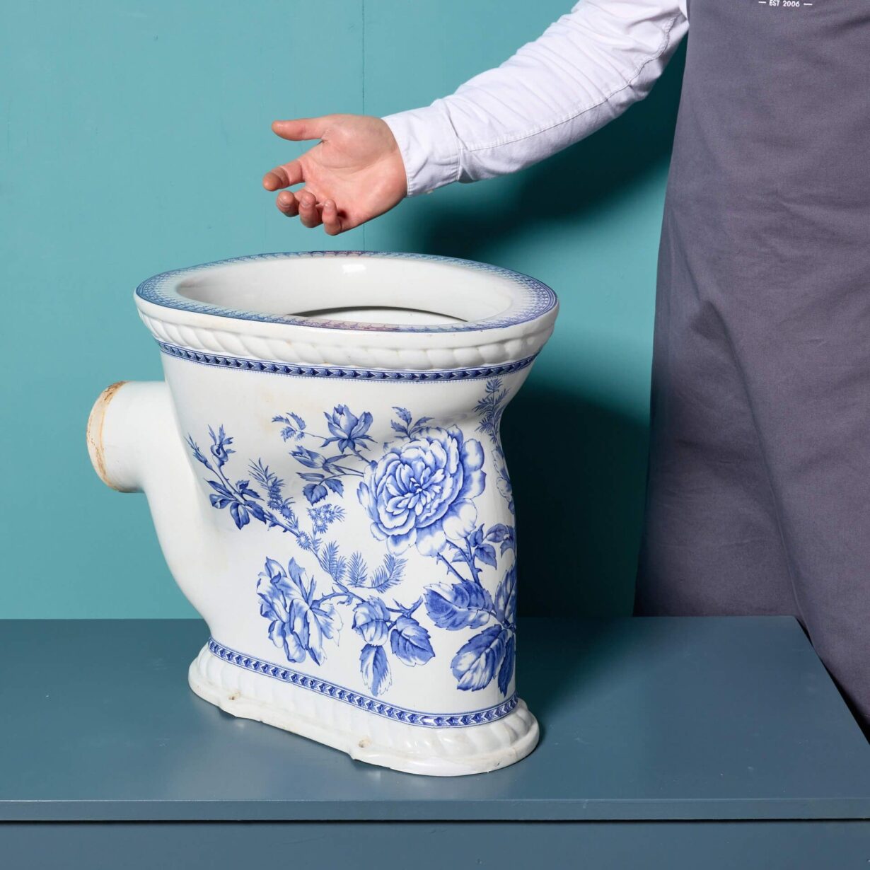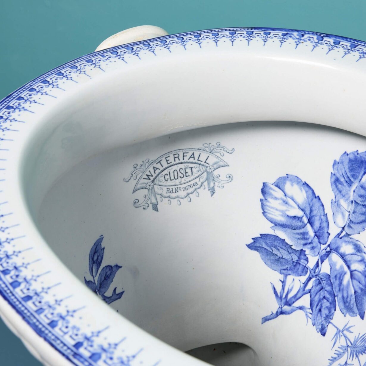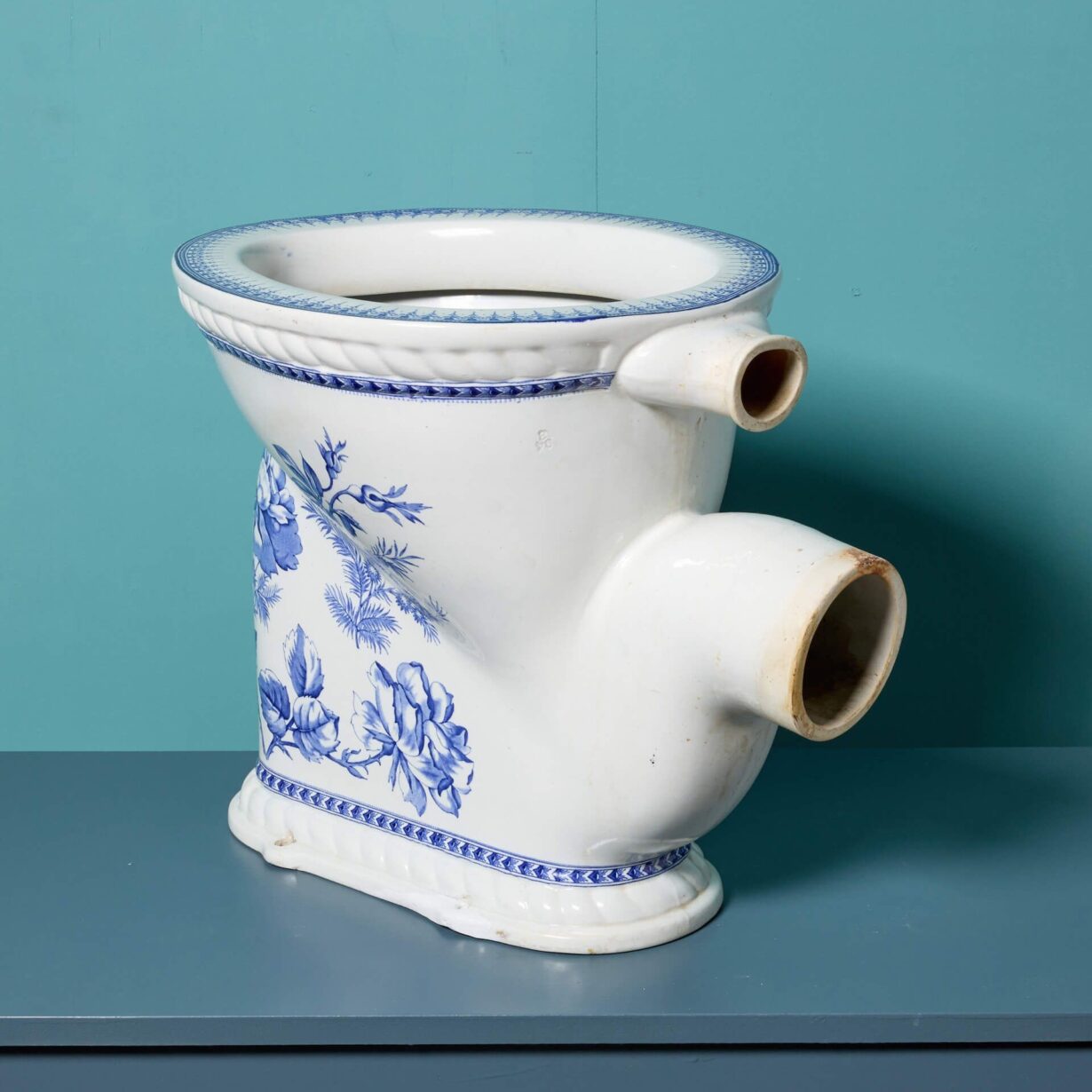 back to topAn antique floral transfer print Waterfall toilet with p trap. Perfect for a vintage cloakroom or period style ensuite, this elegant toilet features a traditional Victorian design and details with its blue and white print. The Waterfall model would look stunning accompanied with a high level cistern, further highlighting its 19th century character.