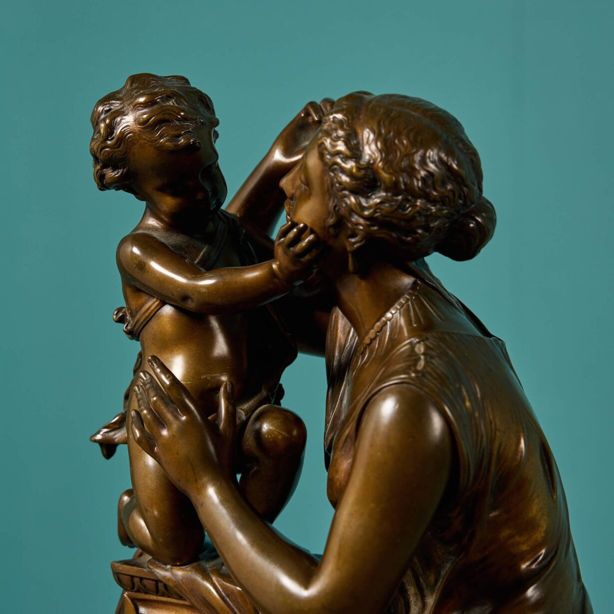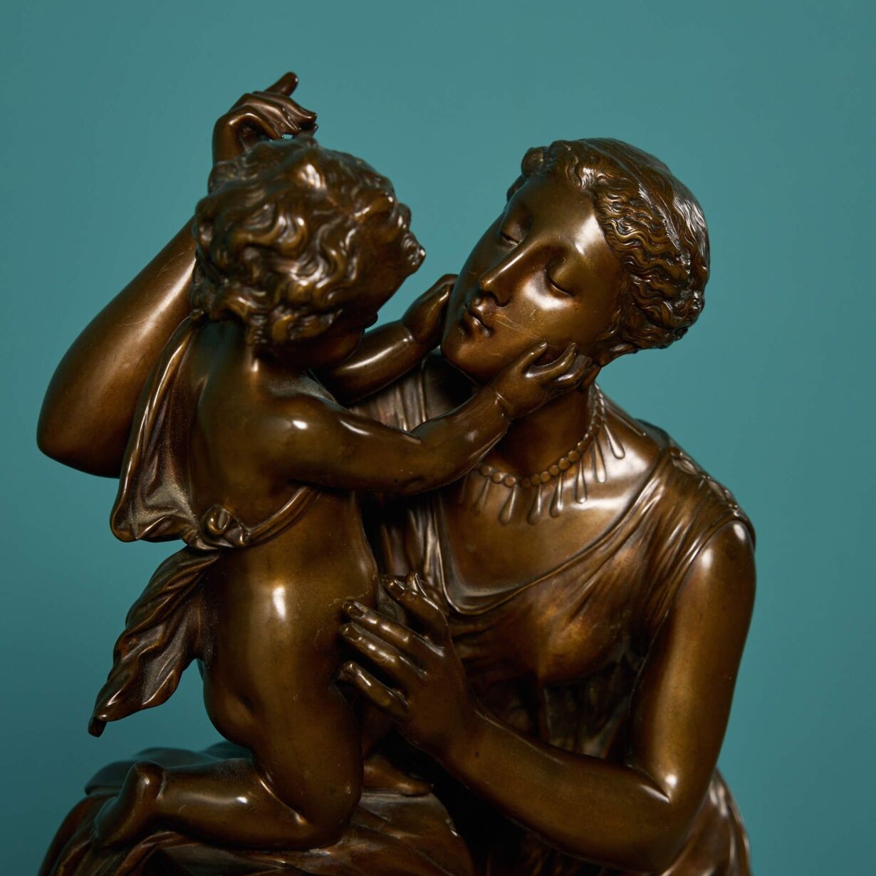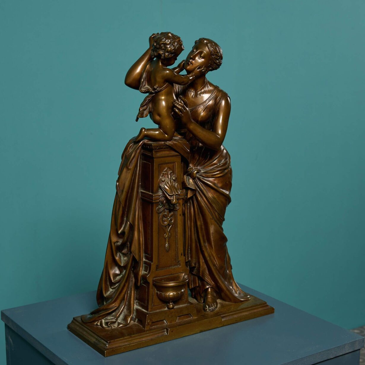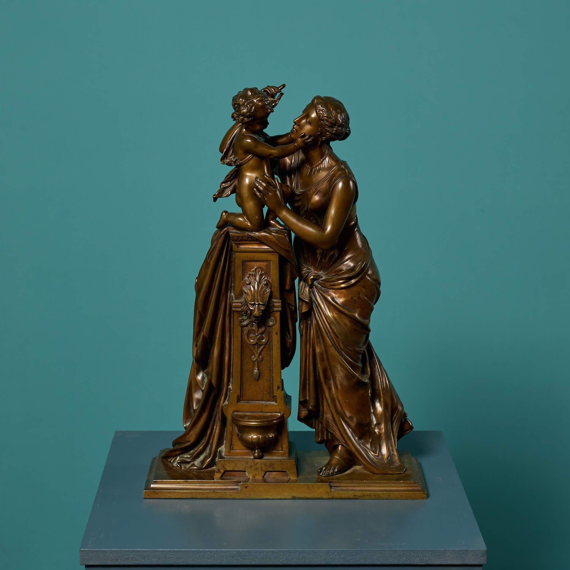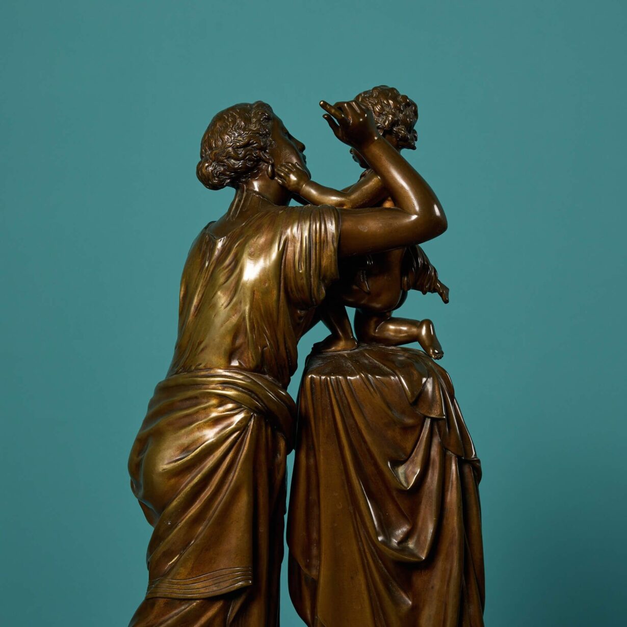 back to topAn antique French bronze sculpture depicting a mother and child, in the manner of Jean-Jacques Pradier.