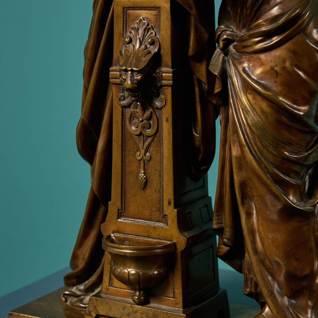 In Neoclassical style, the patinated bronze of this piece gives a striking lustrous finish.