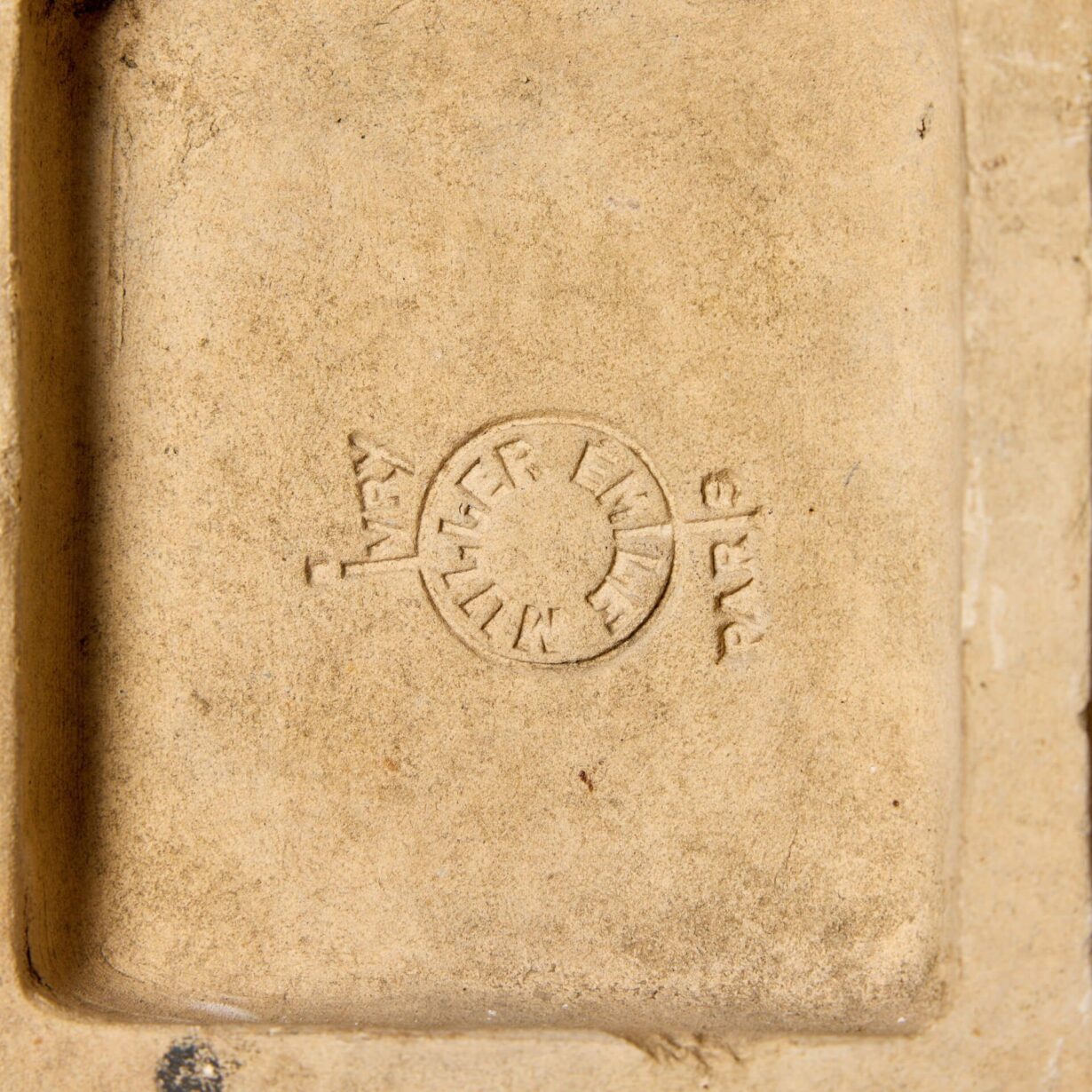 This antique terracotta plaque is stamped to the back with the Parisian makers mark of the Émile Müller & Co. stoneware factory. Beginning as a manufacturer of roofing tiles, Émile Müller (1823-1889) established the ‘The Grande Tuilerie’ in Ivry, Paris on the banks of the Seine River in 1854. In 1866, the factory diversified, producing enamelled bricks which proved a sensation at the 1889 Universal Exhibition, Émile Müller becoming the centre of Art Nouveau stoneware production in France. Later that year, Émile Müller died and his son Louis (1855-1921) succeeded him as head of the company, renaming it ‘Émile Müller & Co’.