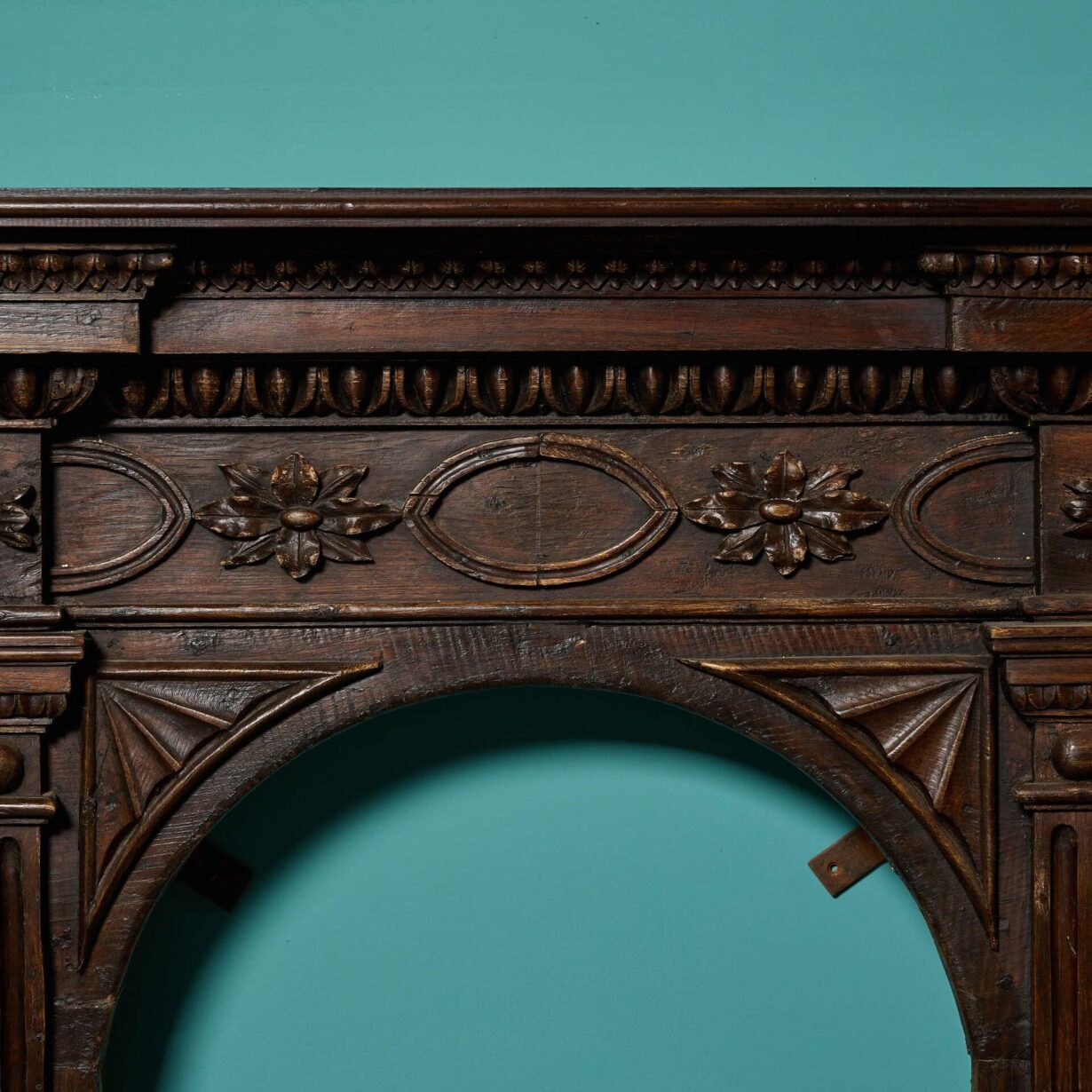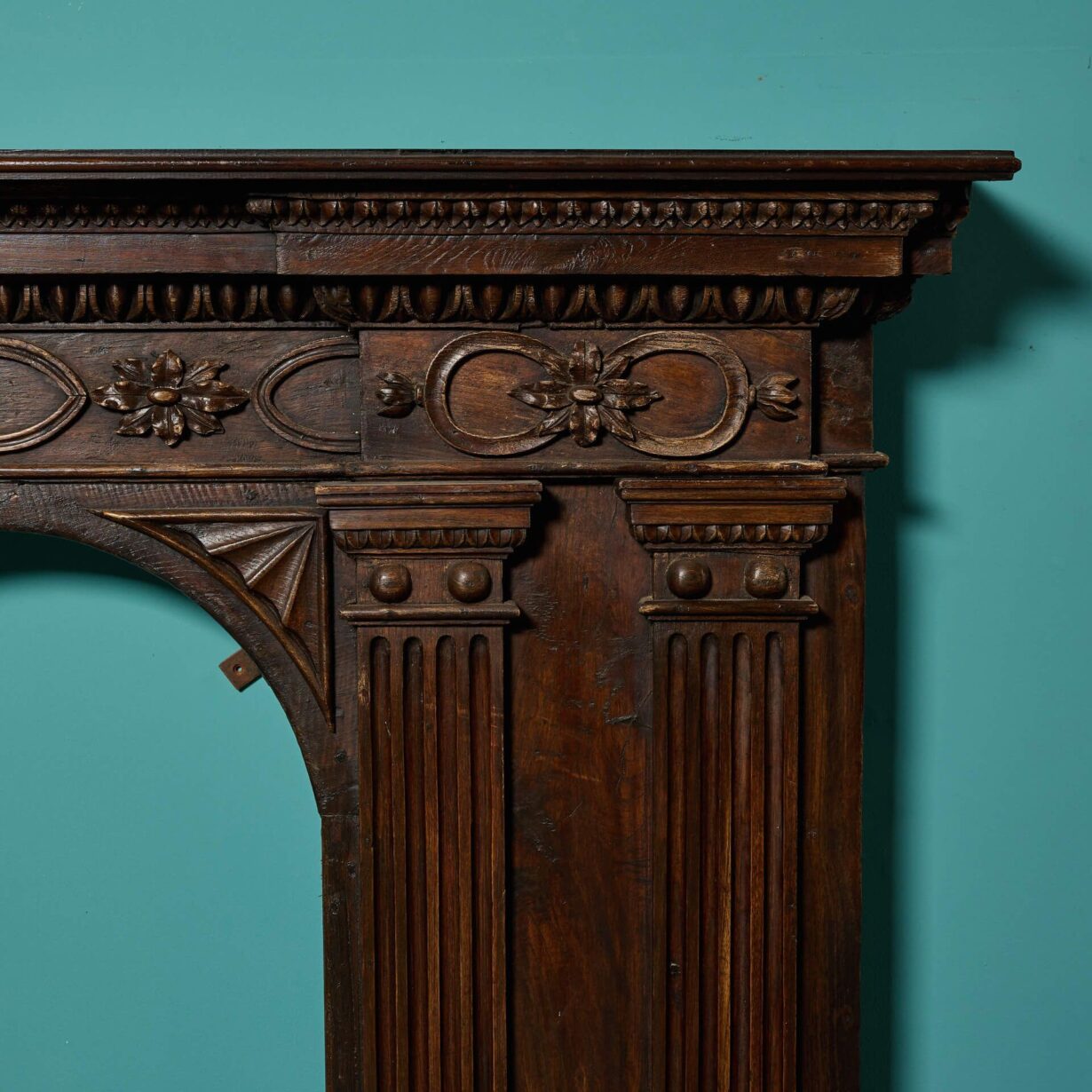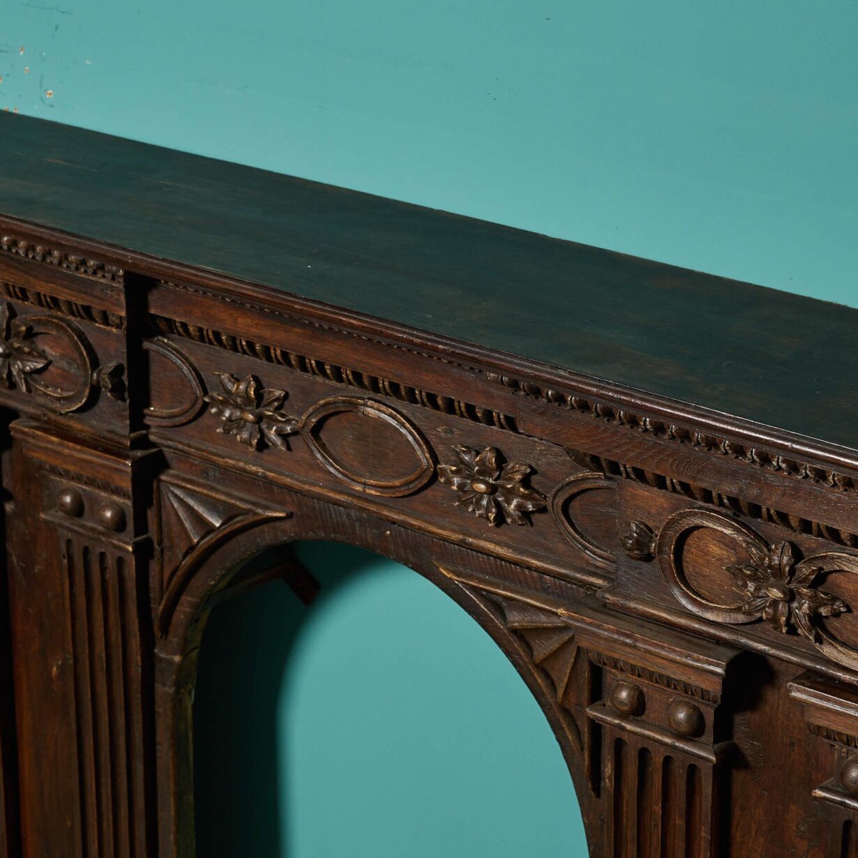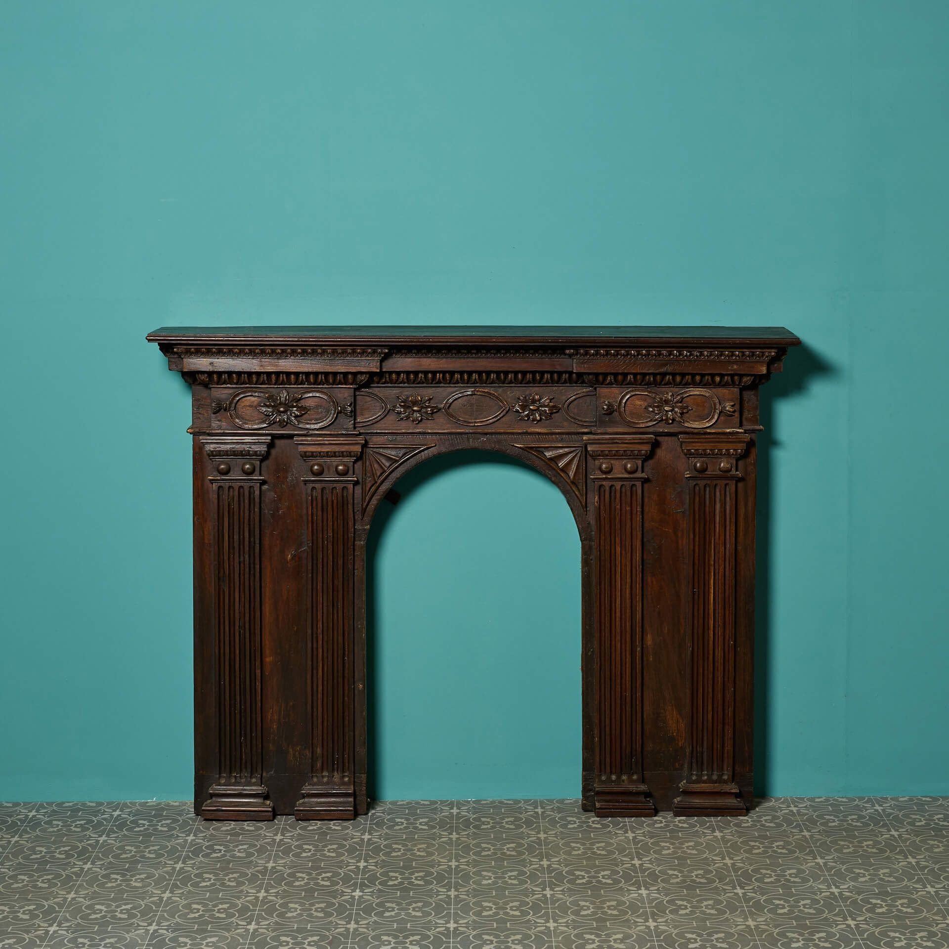 back to topA good quality antique French walnut and oak fire surround with arched opening and superbly carved frieze panel. With a rich wood colour, wide jambs carved with columns and beautiful flowers across the frieze, this is a handsome and unusual fireplace, making a unique feature of any room.