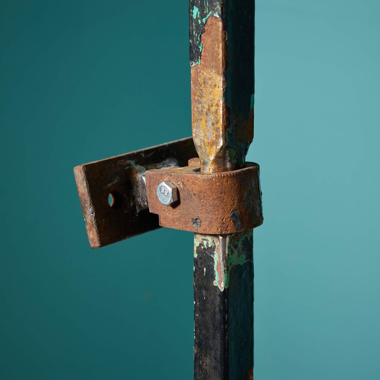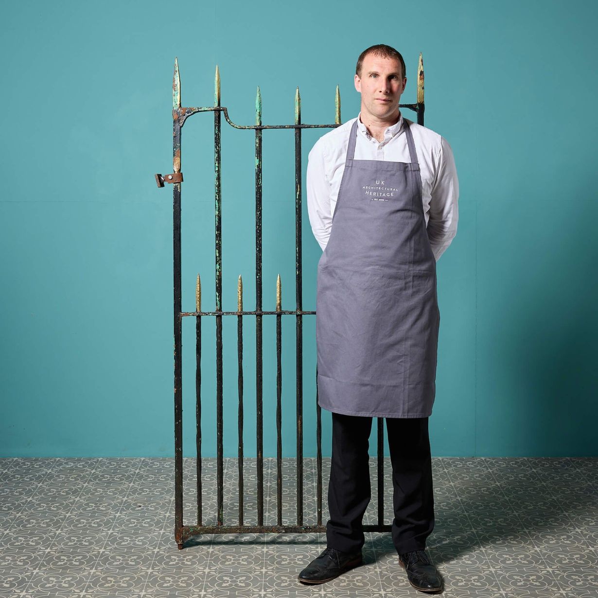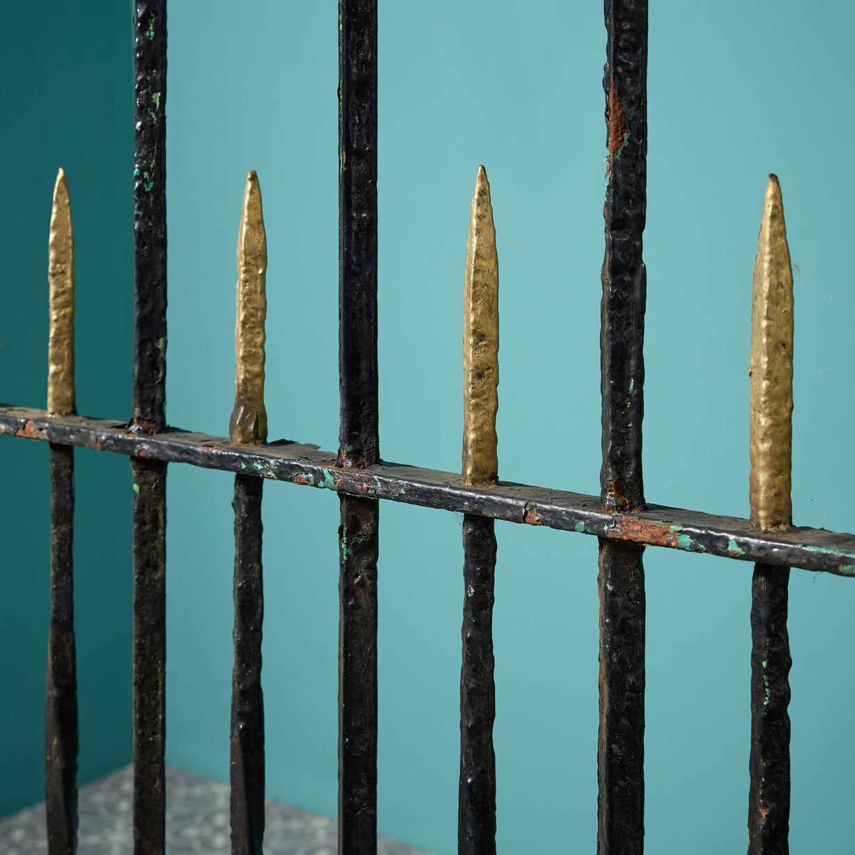 back to topAn antique Georgian era wrought iron garden gate; one of two similar we have for sale. Though made at the cusp of the 19th century, this iron side gate will sit beautifully in gardens traditional and contemporary alike with its simple vertical bar design and worn gold painted spikes.