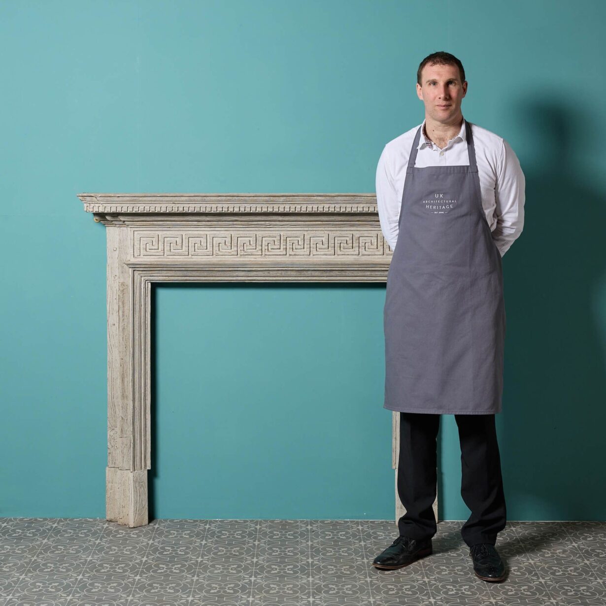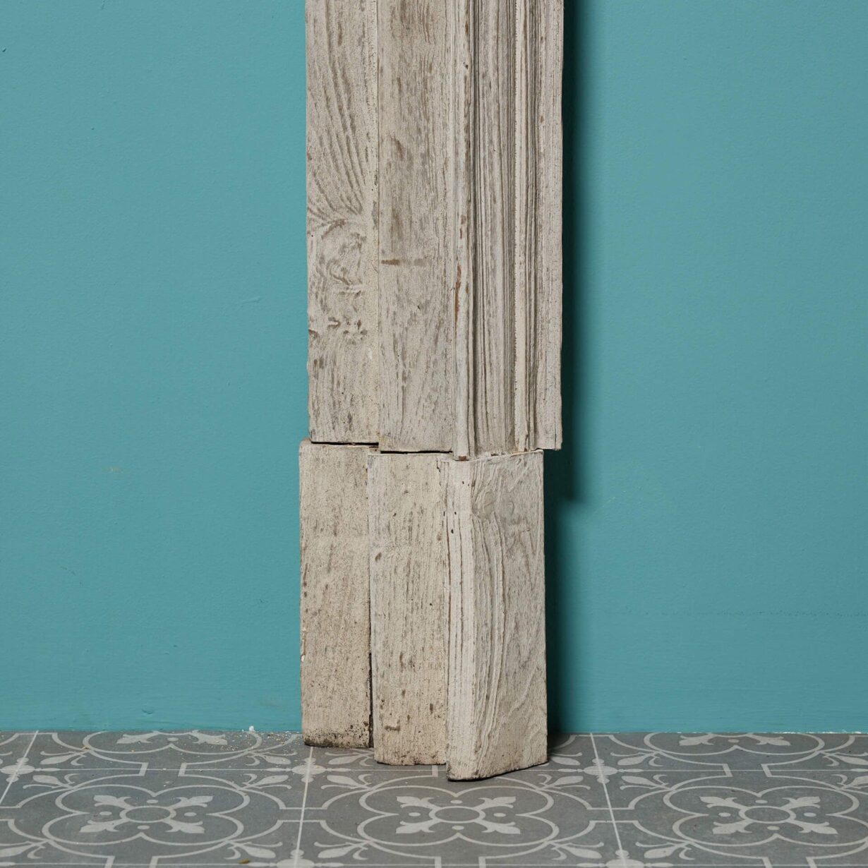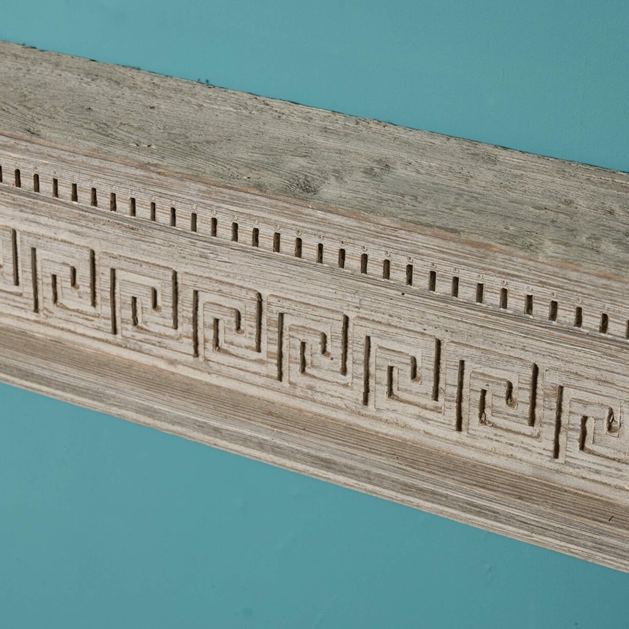 back to topA mid-late 19th century English grey wash pine fireplace. This striking fire mantel dates from the 1870s and is stylishly decorated with repeating Greek key details across the frieze that create a stylish neoclassical look. It is finished in a grey wash and has been sandblasted to achieve a distressed look, becoming a timeless addition to interiors old and new. Dentals ornament the staggered shape of the mantel shelf, adding to its grandeur as the focal point of a room.