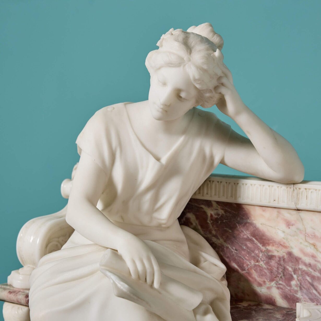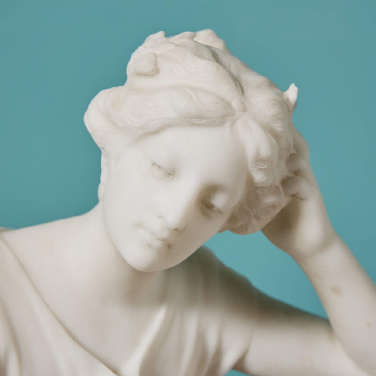 back to topAn antique Neoclassical statuary marble sculpture depicting an interpretation of ‘In the Days of Sappho’ also known as ‘Reverie’, after the oil painting by John William Godward (circa 1904).